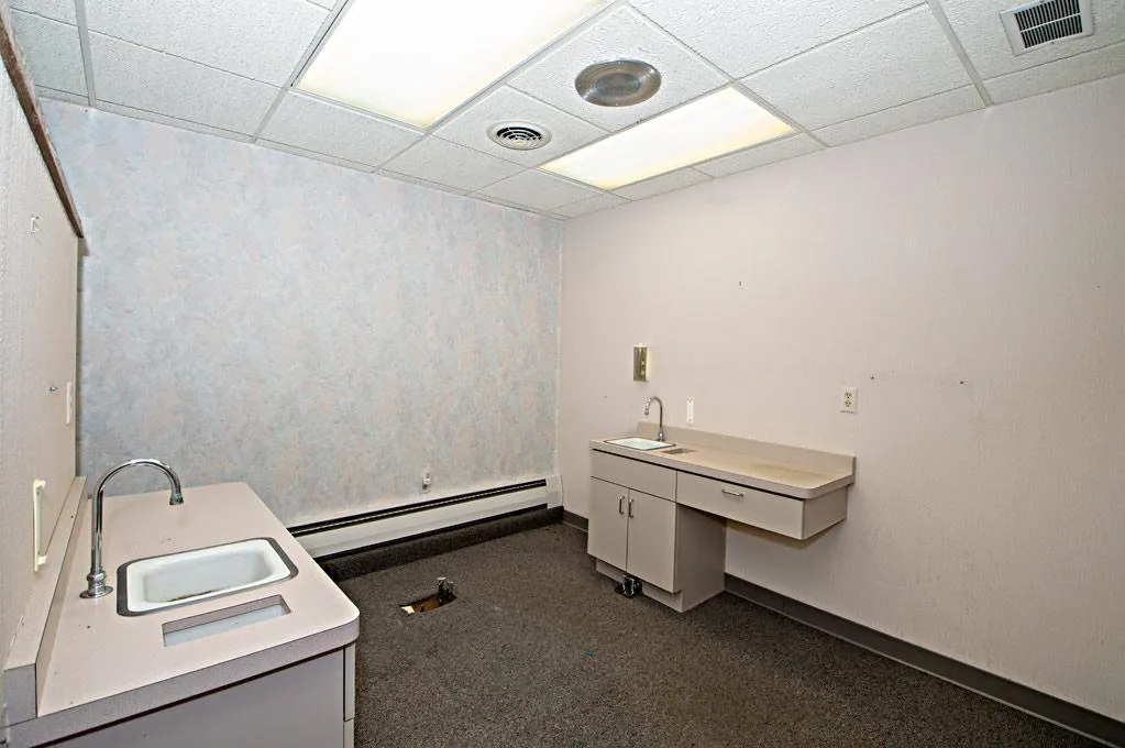 Spacious double suite unit on main floor with two separate entrances to common area to maximize potential! This space offers 2 reception areas, 2 waiting rooms, multiple offices and 2 private restrooms! In addition, there are several wash stations with multiple sinks making this a great space for dental business, salon, med/spa – the possibilities are endless! 2 designated parking spaces for the 2 units with additional public off street parking in paved lot. Easy access and great location, the Executive Plaza Bldg. Has newer roof and professional presence for your business space!