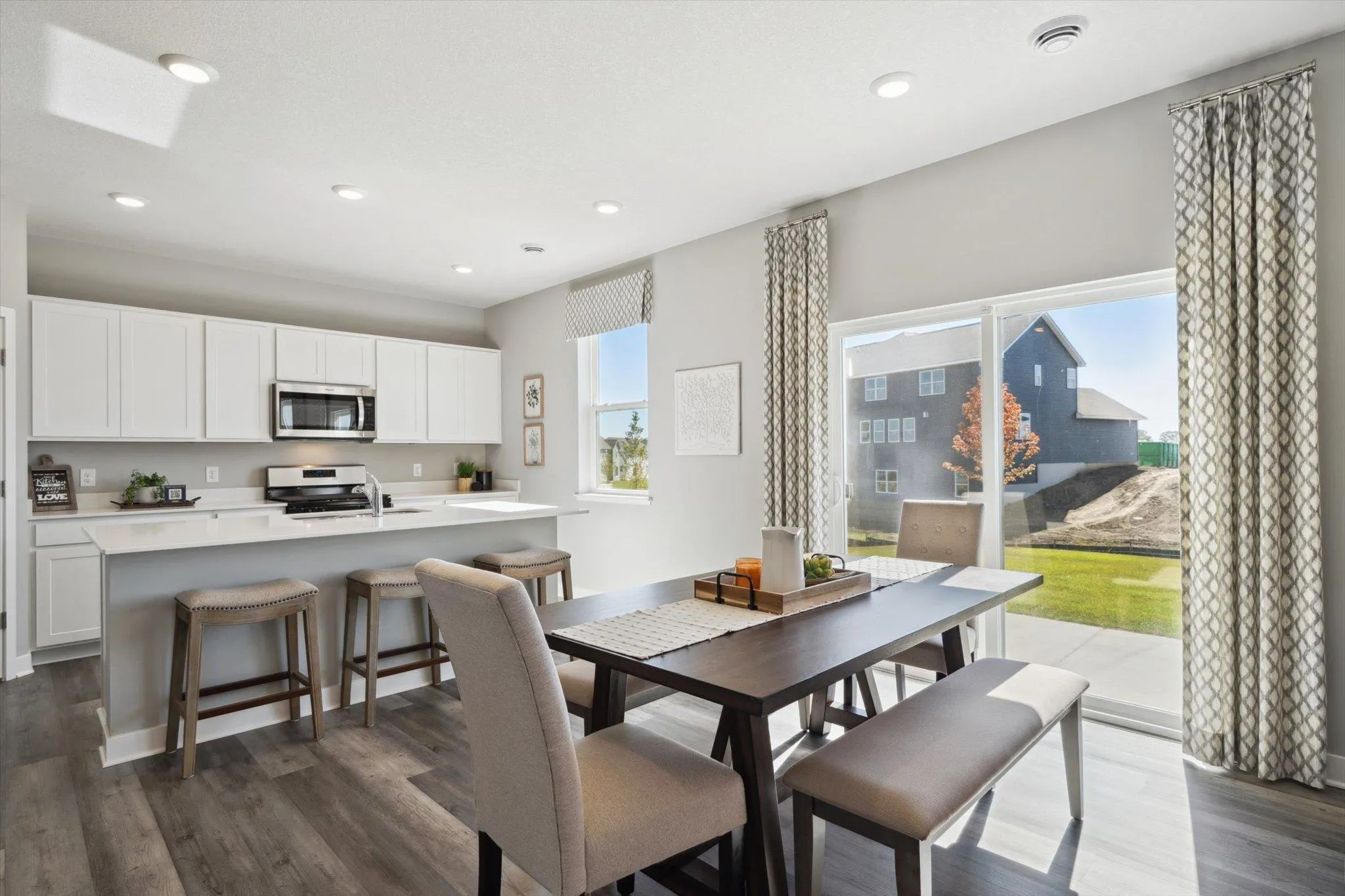 The Holcombe kitchen is a highlight of the home with a corner walk-in pantry, beautiful quartz countertops, an island with breakfast bar, and stainless appliances. Need to work from home? The Holcombe has a private study/flex room on the main level as well. Upstairs features a loft for more living space, conveniently located laundry room, and four bedrooms. Relax in the private bedroom suite with bath and walk-in closet. Smart home technology, fully sodded yard and irrigation included. Listing for model home, not for sale at this time. Inquire within about same and similar plans available for sale.