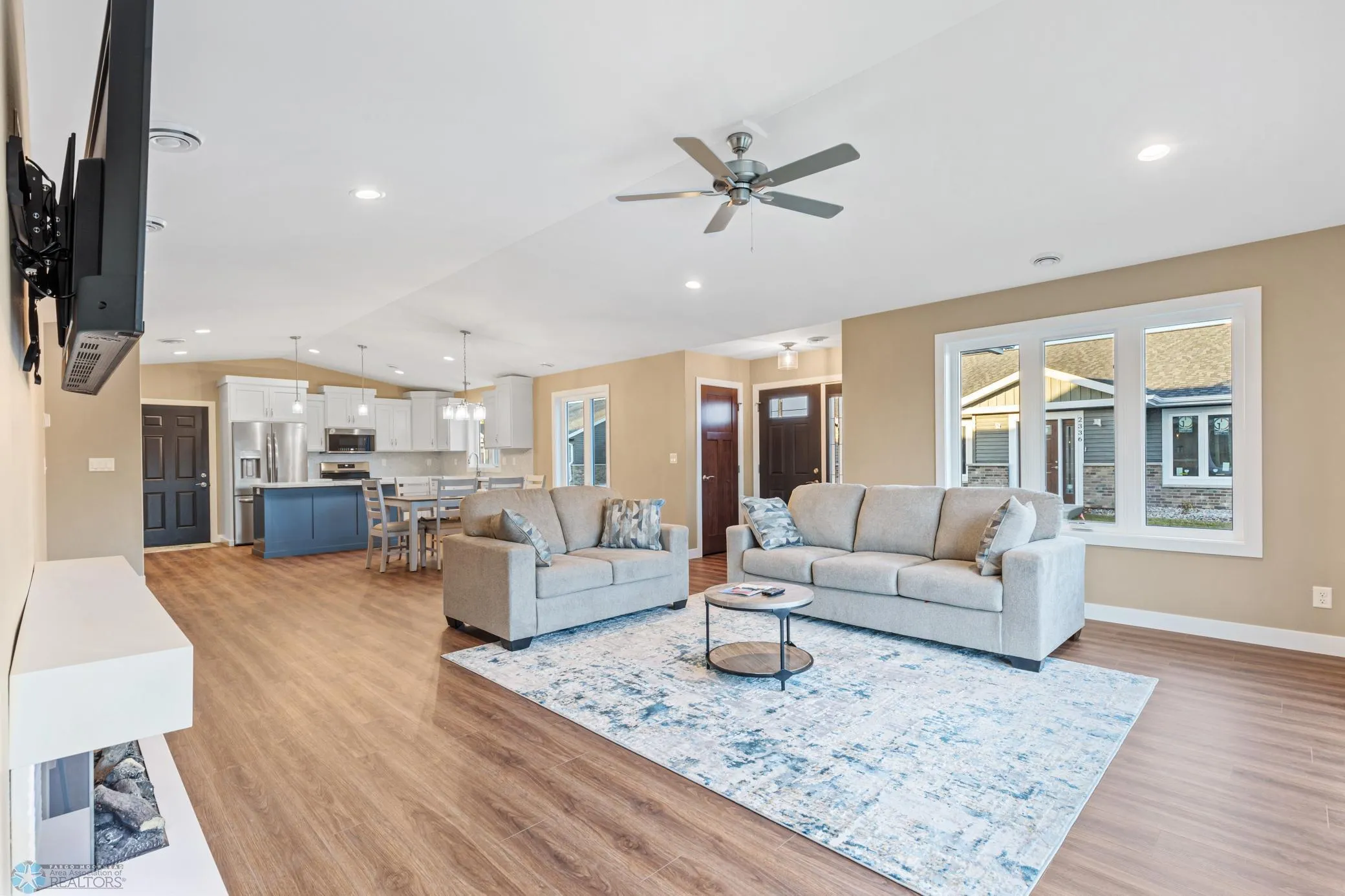 Wonderful , Easy, Carefree Living, with NO steps and NO yardwork!! 1400 Square feet featuring an Open Great room w/vaulted ceilings, 9′ Patio door to a Concrete Patio w/Privacy fence, Electric Fireplace, Dining room, Beautiful Kitchen w/Island and Tile Backsplash, Laundry and walk in Pantry. Large Guest Bedroom and Full Bathroom, Large , Heated 2 car garage with Floor Drain. ALL Appliances and Window Treatments INCLUDED!! NO Specials !!