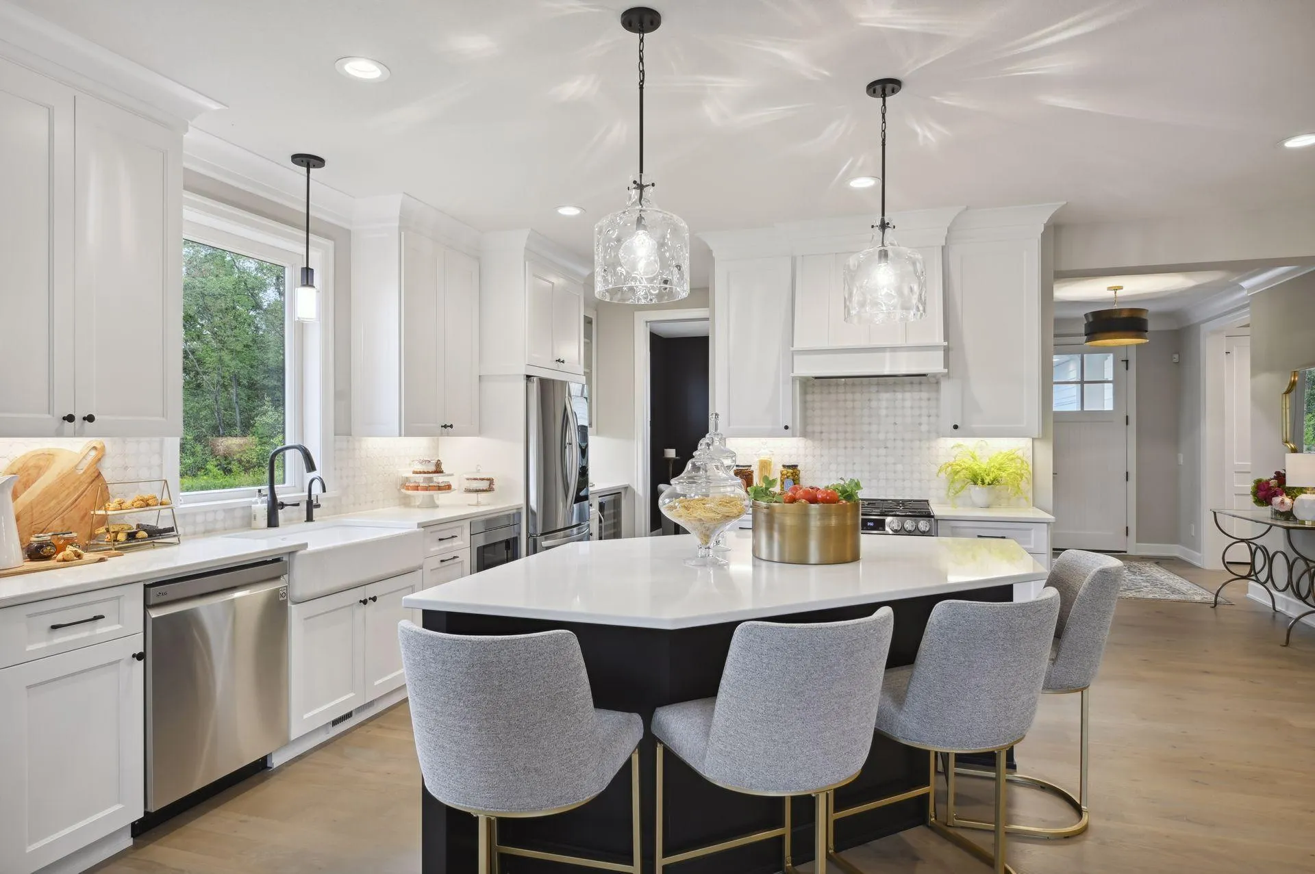 Step into the stunning four-season porch, where walls of windows invite natural light and provide breathtaking views of the wooded backyard, seamlessly connecting indoor and outdoor living. The maintenance-free deck offers an ideal space for entertaining or relaxing in nature. The lower level is an entertainer’s paradise, designed for leisure and enjoyment, featuring a well-appointed wet bar and a billiards/game area complemented by a built-in media center adorned with shiplap detail. This level also includes a dedicated exercise room, two additional bedrooms, and a stylish 3/4 bath accentuated by a large ceramic tile shower. Throughout the entire residence, incredible architectural elements enhance the sophisticated aesthetic, making this home a truly exceptional offering.