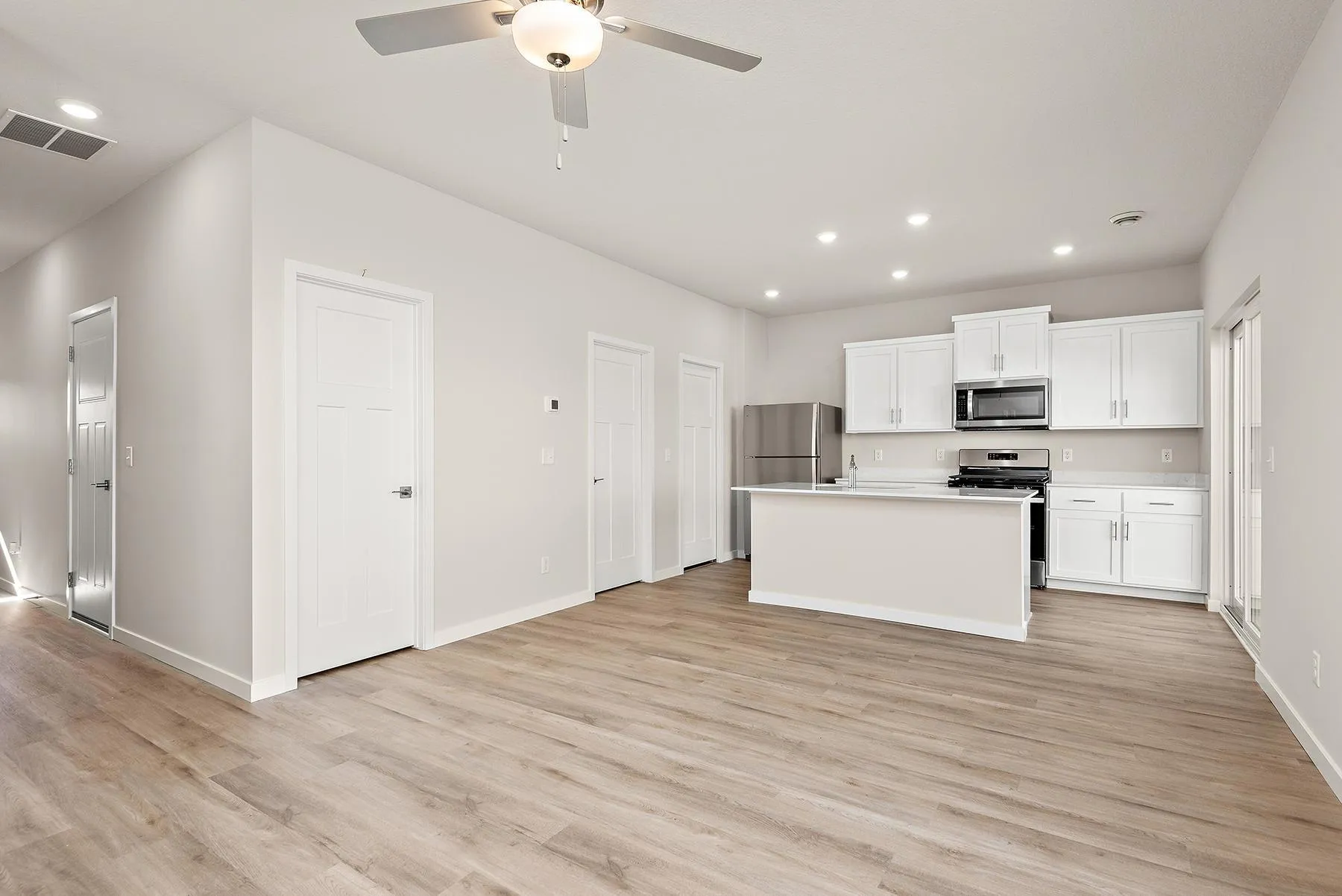 This beautifully designed home truly has it all! The chef-ready kitchen is a standout feature, boasting quartz countertops, a spacious island with seating, a full suite of stainless steel Whirlpool® appliances, and a large walk-in pantry. Just off the kitchen, you’ll find the dining room with convenient access to the backyard—perfect for indoor-outdoor living. The first floor also includes a grand foyer and a convenient powder bath. Upstairs, the primary suite offers a tranquil retreat with its attached bathroom featuring a tub/shower combo, a large vanity and a generous walk-in closet. Additionally, the upper level includes two more bedrooms, a full bathroom, and a versatile loft space to suit your needs. The lot features a nice backyard perfect for entertaining or relaxing with family!