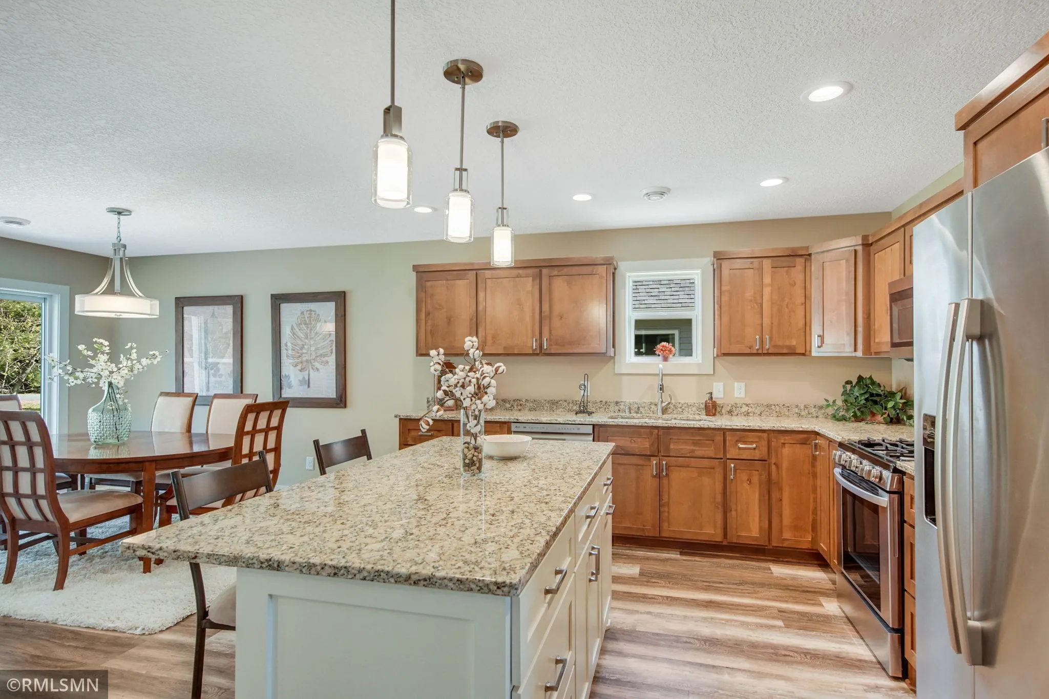 Discover refined living at St. Clair Lakes, an exclusive, association-maintained enclave crafted by Joshua Markum Builders. This brand-new, slab-on-grade luxury villa is designed for effortless main-level living—featuring two expansive primary suites, radiant in-floor heat, and a thoughtfully designed open layout centered around a warm, inviting gas fireplace. The chef-inspired kitchen is the heart of the home with custom cabinetry, your choice of granite or quartz countertops, a generous island, and premium stainless-steel appliances. Unwind outdoors on the charming covered front porch or relax in the screened porch overlooking peaceful backyard views. A third bedroom offers ideal flexibility for guests, hobbies, or a private home office. Additional highlights include an oversized two-car garage with convenient upper-level cold storage, beautifully landscaped surroundings, and the priceless benefit of association-maintained living. The exterior is complete and the home is fully framed—allowing you to personally select the interior finishes and bring your vision to life. Close in as little as 45 days. All of this, just minutes from I-35, local shops, and dining—where luxurious comfort meets everyday convenience.