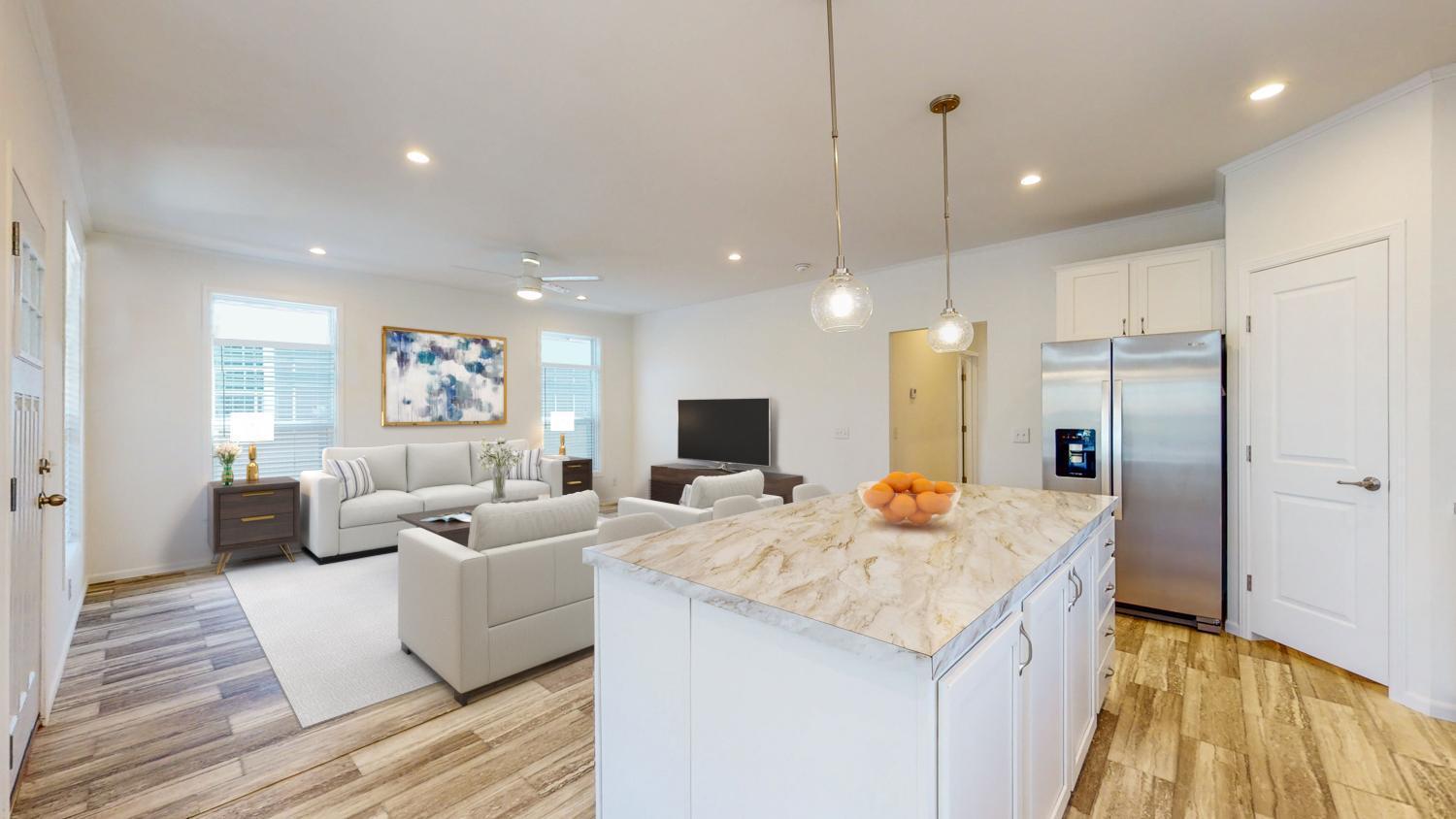 Bright and spacious 3 bedroom, 2 bath home with open concept living room, dining area and kitchen with over 1,500 main floor living. The kitchen has loads of storage and counter space, walk-in pantry, and an over-sized island. Grand-sized primary bedroom with private bath. Laundry room is conveniently located near the bedrooms. Inviting front porch! Carport offered with possibility of a 1 or 2-car garage. Upgrading to a garage is an additional cost. Enjoy this maintenance-free living with the association taking care of the lawn, snow removal, and much more.