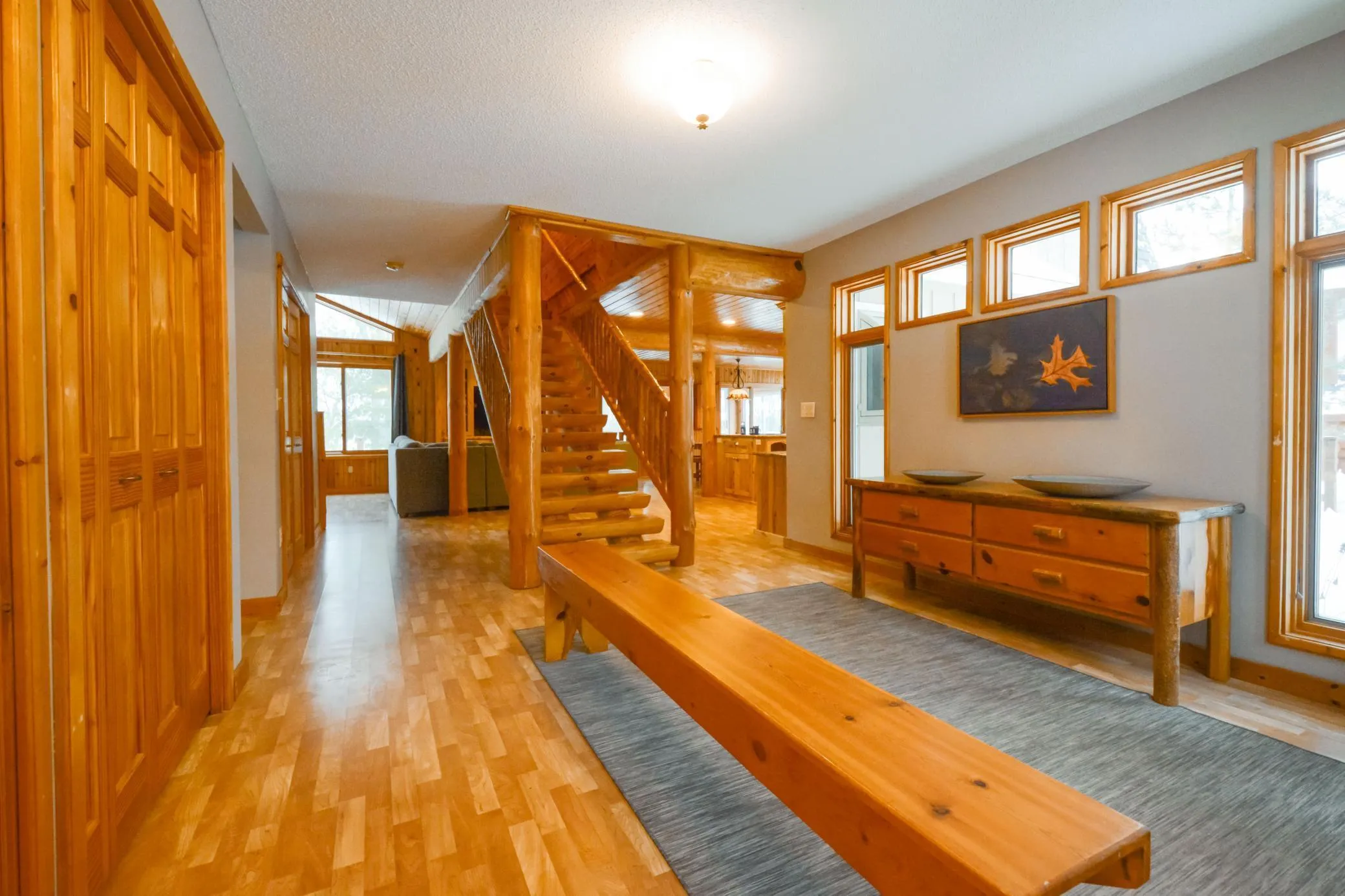 Enjoy Over 100 feet of east-facing shoreline on Big Stony Lake with this stunning year-round home, ideally located on a quiet dead-end road just 10 minutes from Park Rapids. The open-concept main level is ideal for entertaining, featuring spacious living and dining areas, a gourmet kitchen with a large island, a lake-facing wet bar, a cozy fireplace, and in-floor heating. Knotty pine interiors and high-end finishes blend timeless Northwoods charm with modern comfort and lakefront living in one exceptional property. The primary suite is a spa-like retreat with a soaking tub, separate shower, and walk-in closet. Upstairs offers three bedrooms, a ¾ bath, and a cozy reading nook, while the finished lower level adds a family room, flex room/office, and an additional bath—plenty of space for everyone.