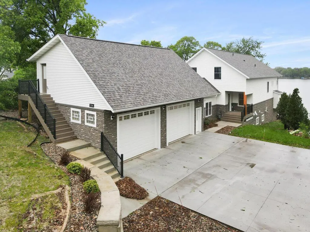 Experience luxury living at its finest with this new construction home on the pristine shores of Spring Lake. Offering nearly 5,000 sq. ft. of expansive living space, this home features 2 bedrooms on the main floor, including the luxurious primary suite, plus 2 additional bedrooms on the upper level. The open-concept main floor boasts vaulted ceilings, wood accents, and a floor-to-ceiling stone fireplace, creating a warm and inviting atmosphere. The spacious kitchen with a large center island flows into the great room and out to a large Trex deck, offering sweeping lake views. Upstairs, you’ll find a loft area perfect for gaming or study. The lower level is an entertainer’s dream with a 12′ cedar ceiling, in-floor heating, an indoor heated pool, sauna, wet bar, and direct access to the lakefront patio. Above the garage, a bonus room offers endless possibilities, with easy access via spiral staircase or side garage door. Just minutes from Prior Lake Schools, parks, and year-round recreation, this home provides the ultimate lakefront lifestyle.