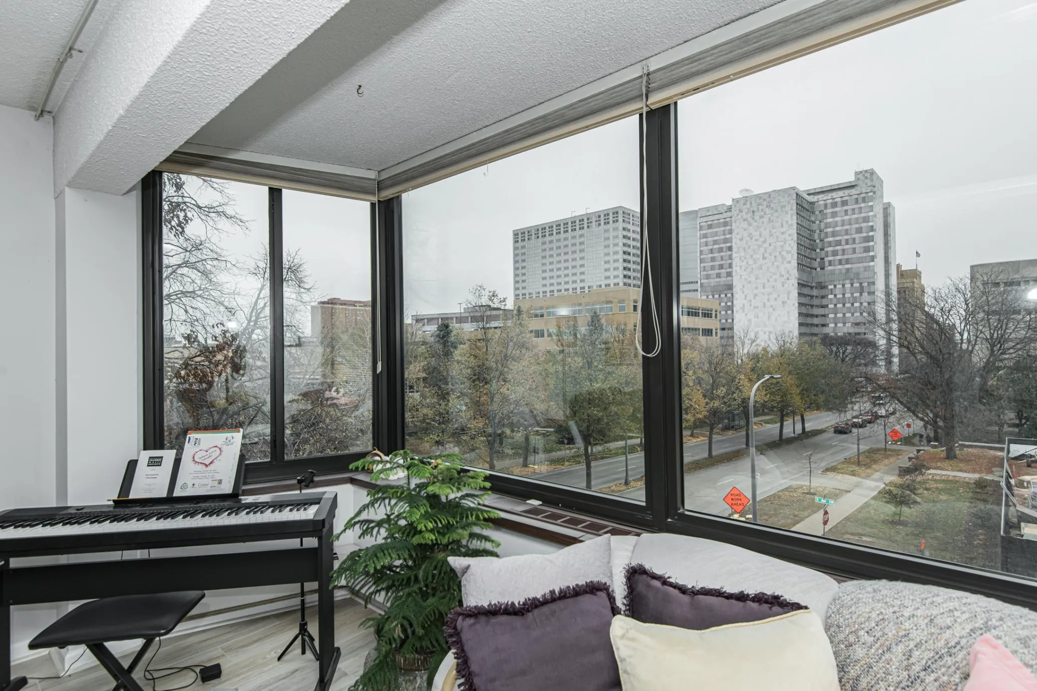 This beautifully maintained 2-bed, 2-bath corner unit condo offers a fantastic low-maintenance lifestyle! You’ll love the updated kitchen featuring granite countertops and soft-close cabinets. The open living areas boast attractive laminate flooring and offer pleasant city views. Both bedrooms are generously sized and include plenty of closet space. The community amenities are excellent, including an indoor heated pool, exercise room, patio with a grill, library, kitchenette, and convenient on-site laundry. You’ll also appreciate the underground heated garage with an assigned parking spot conveniently located near the elevator. The HOA covers all utilities except for electricity. The location is ideal, providing easy access to everything downtown has to offer, such as restaurants, shopping, the clinic, and the subway system.