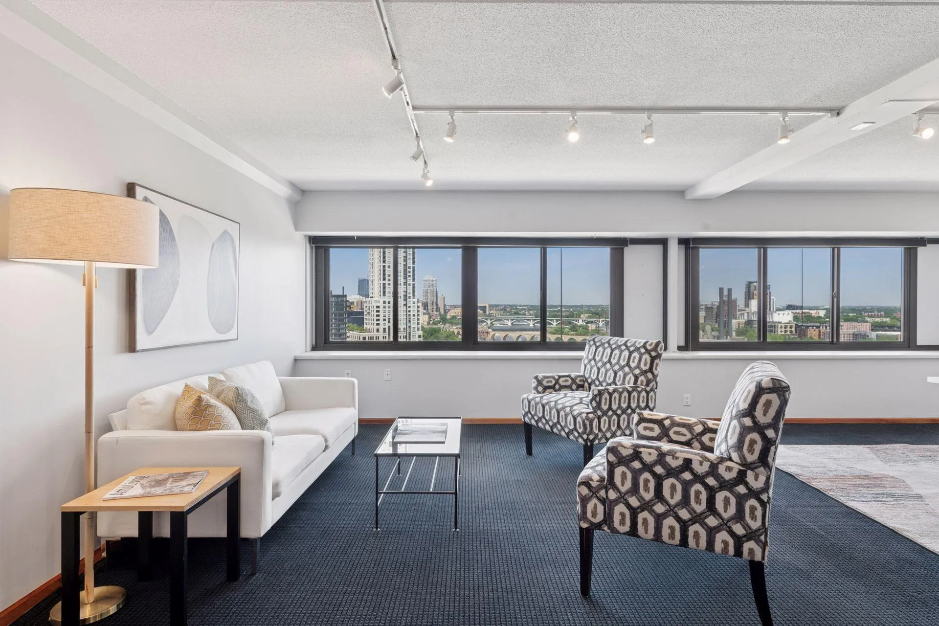 Breathtaking 15th floor condo on West Bank with adaptable-spaces! Walk or bike to U of M campus. Formerly a 2-bdrm unit, the wall between LR and 2nd bdrm has been removed resulting in a Great Room with newly replaced windows overlooking downtown Mpls skyline and the historic Stone Arch Bridge. This expansive space has timeless no-pile denim blue carpeting and can be used as a single Great Room or as a LR with formal dining area space. A wall of white cabinets could also see part of this space used as a home office or partially partitioned off for use as an artist’s studio, etc. Or replace the wall to create a 2nd bdrm if needs dictate? Or maybe a wall with french doors opening to LR? So much potential, let your imagination be your guide! Among the updates, the bathrooms, kitchen & flooring have been renovated. Special glass block niche in foyer lends a welcoming Art Deco look. Enjoy the unobstructed Mpls nightscape from the large windows in the bedroom! Note that the HOA fees include all utilities including basic cable and internet. HOA fee displayed includes regular monthly fee $11084.44 ($10 storage rental $10) Riverview Tower is an established condo community where Community living is comprehensive; great on-site mgmt, monthly HOA includes all utilities, basic cable, internet, heated indoor pool, whirlpool, fitness room, sauna, outdoor patio with gas grills, community rm w kitchen, package room.** NEW HOA policy as of June 2025, association is permitting rentals and pets (ask for details). Underground garage space(s) available for an additional fee. (**This unit’s owner rented a heated garage stall**) The seller will pay $20,000 towards the new windows just installed this summer, at closing. The mess is over, just move in and enjoy!