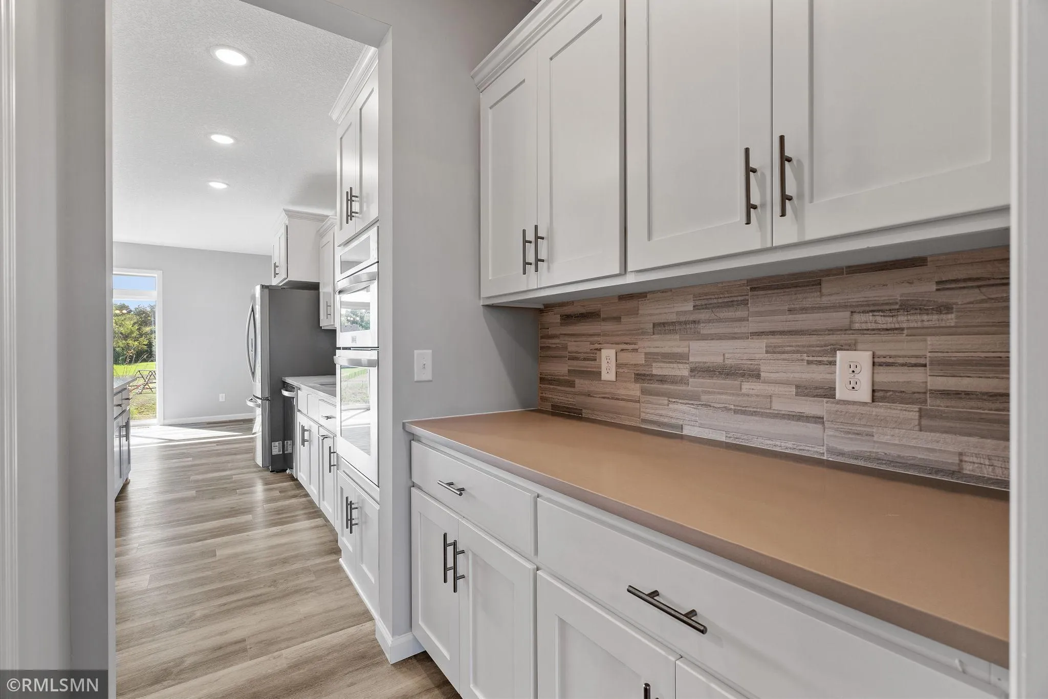 Gorgeous two-story with finished walkout basement on beautiful lot!! The spacious front porch welcomes you into an open floor plan that flows seamlessly thanks to the vaulted ceilings and Luxury Vinyl Plank Wood Floors that run throughout the main level. The front room can be used as formal dining or flex space. The kitchen provides a perfect workspace with a gas cooktop, built in oven, gleaming quartz countertops and tile backsplash, a beautiful butler’s pantry and a huge walk in pantry as well. Gather around the living room fireplace or enjoy the back view from the oversize living room windows. The huge mudroom area includes an oversize built in bench. Rounding out the main floor is a full guest bedroom and full bathroom. The luxury continues upstairs with a spacious loft and owner’s suite bedroom complete with walk in shower and soaker tub, 3 additional bedrooms, and 3rd full bath. The finished walkout basement is a HUGE additional space and includes a large 6th bedroom with walk in closet, bathroom #5, the huge family room area with a sleek electric fireplace, all walking out to a stunning backyard! Sod/Sprinkler Included!