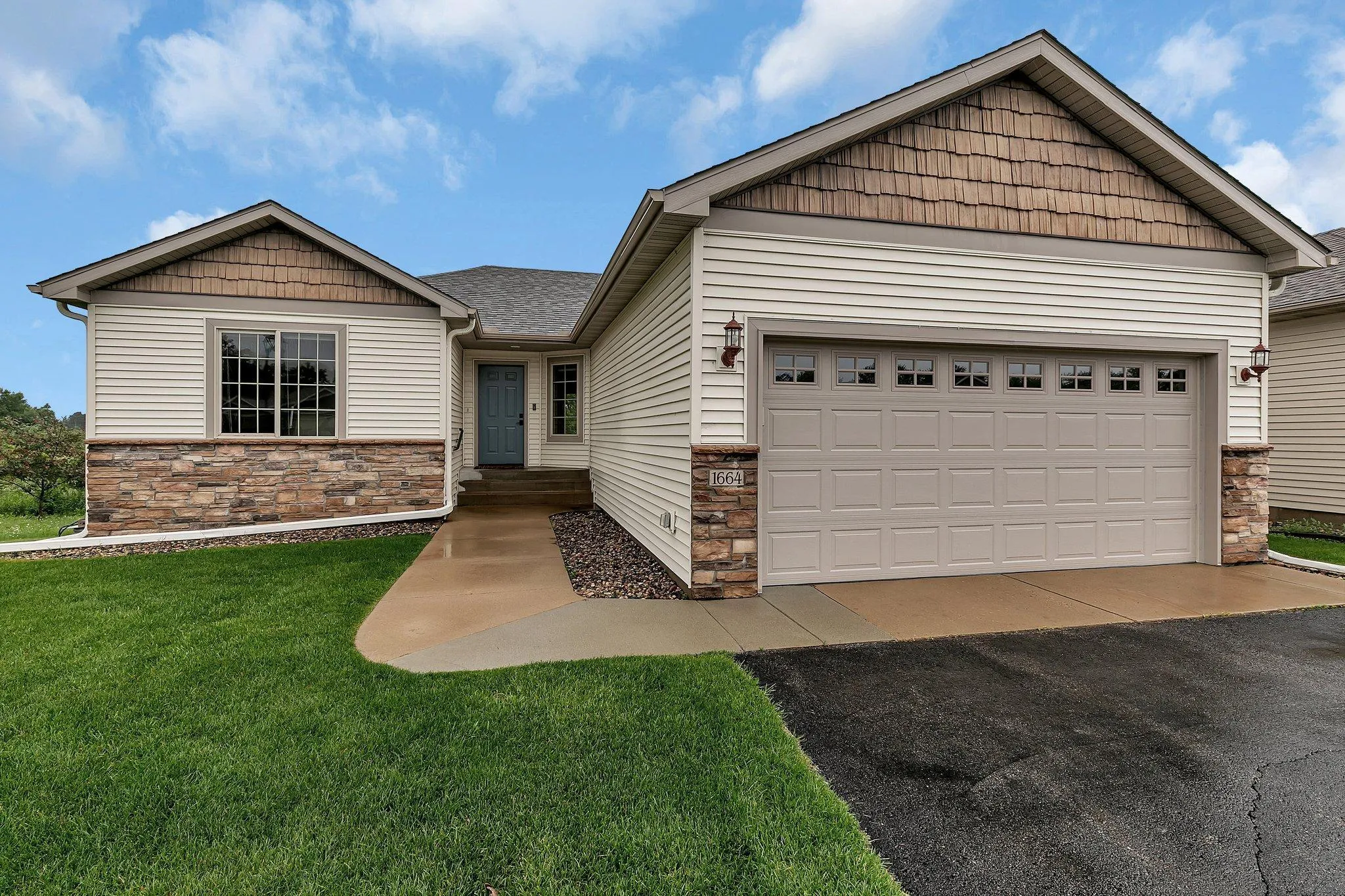 Welcome to this inviting 4 bedroom and 3 bathroom rambler offering, the ease of main-floor living and a fully finished basement. The open floor plan features a bright living room with vaulted ceilings and a cozy gas fireplace. The eat-in kitchen provides abundant storage, and the dining area walks out to a beautiful deck—perfect for relaxing or entertaining. The spacious primary suite includes an en suite bath and a large walk-in closet. Main-floor laundry adds convenience. Downstairs, you’ll find a generous family room with a gas stove and two more bedrooms. Enjoy the mature tree line that provides privacy and scenic views of Autumn Ridge Park. HOA covers irrigation and water for irrigation, lawn care and snow removal for easy living. New roof and new siding 2022.