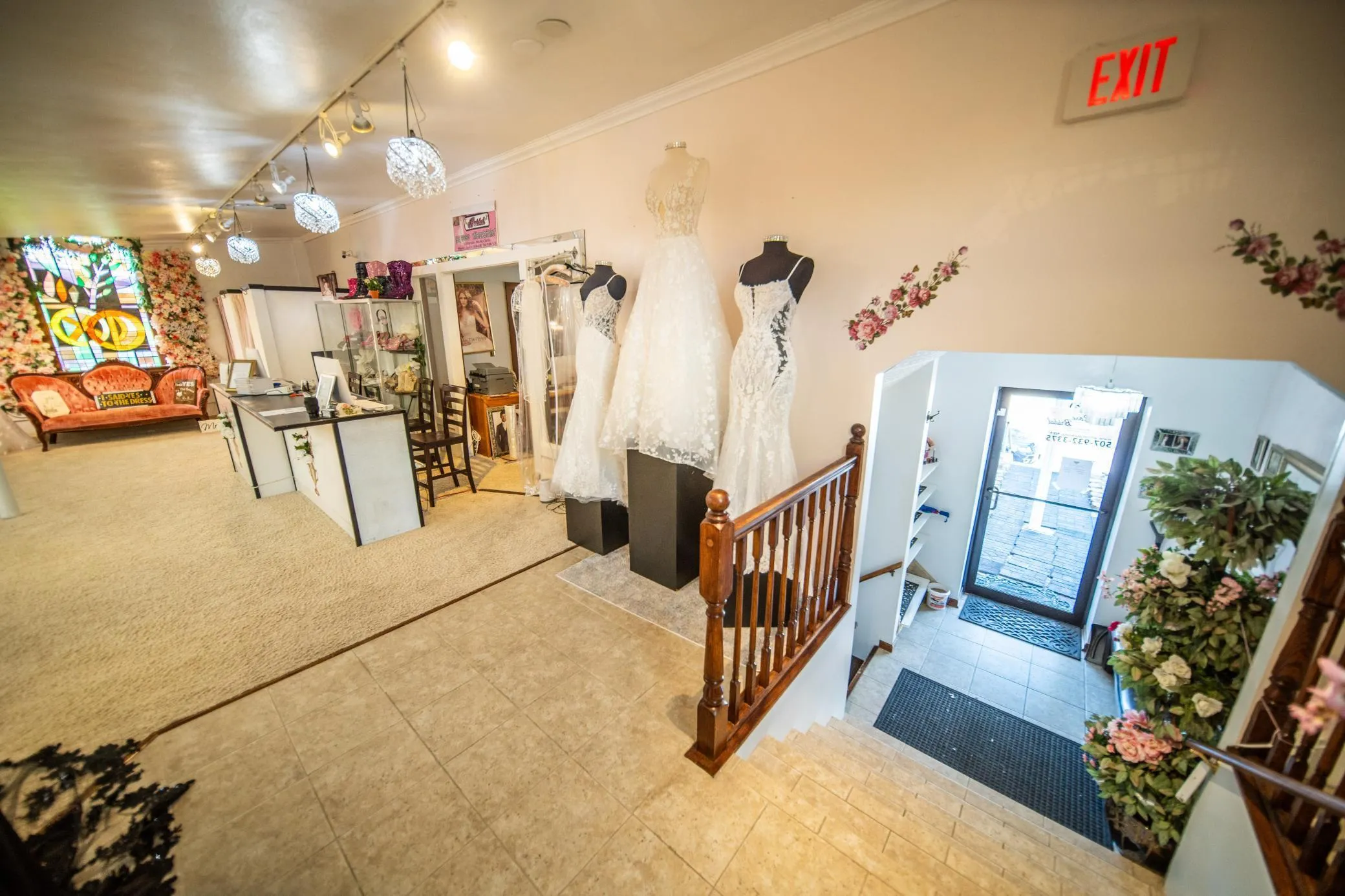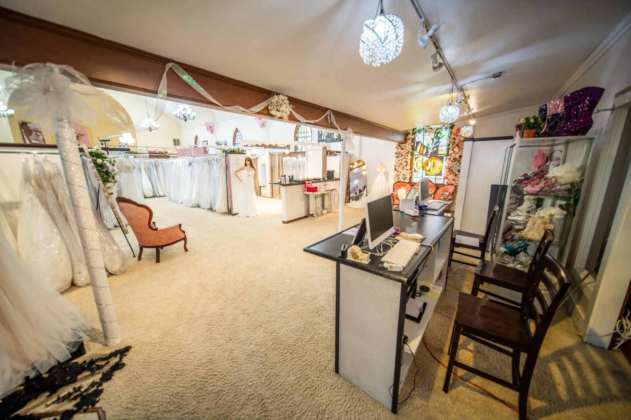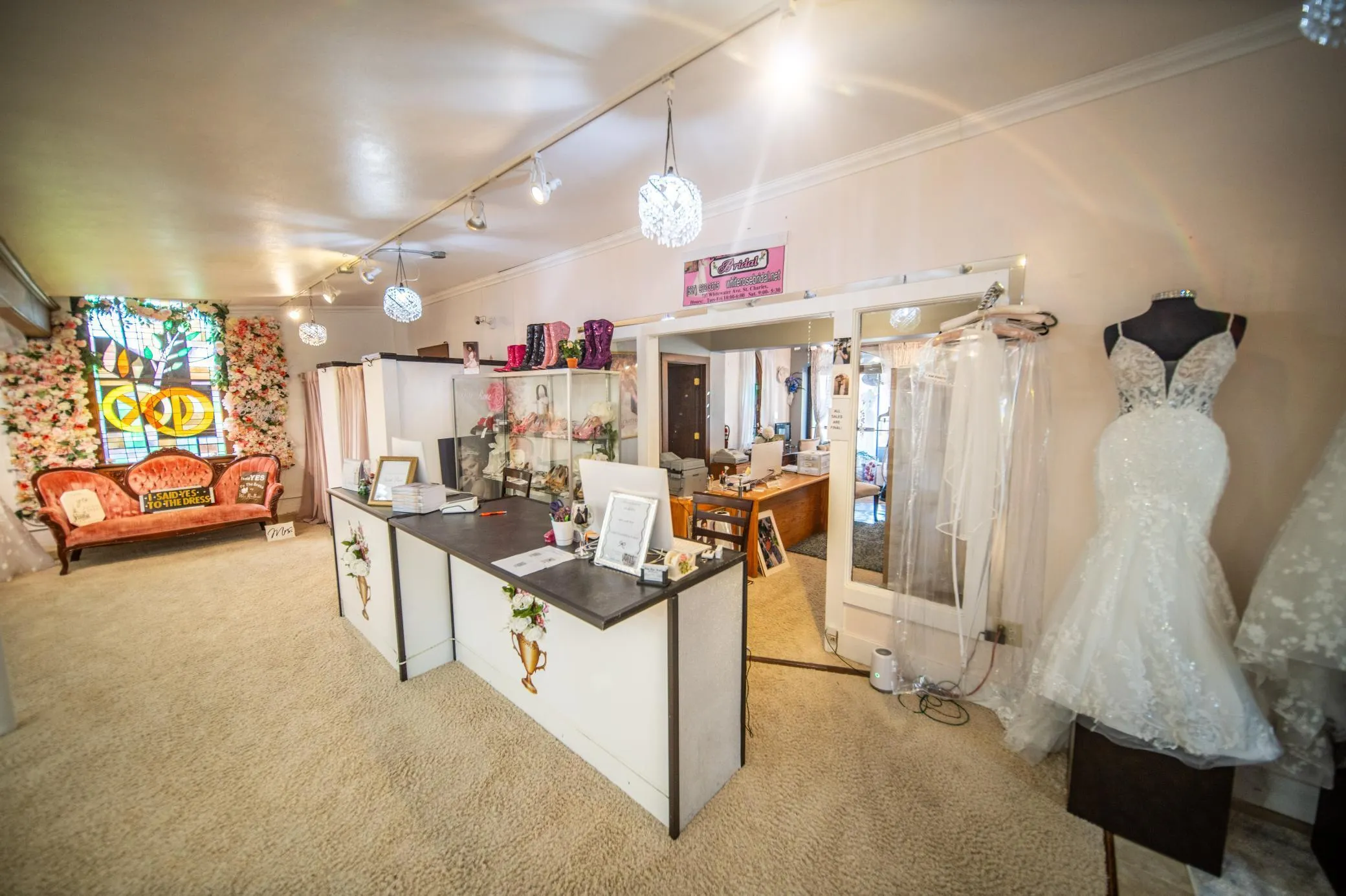 New listing and definitely one of a kind with many options – There is a church building (see pictures) and 2 separate parceled parking lots. Seller prefers to sell all 3 parcels (building, parking lots, business, inventory, land and personal property) together. Contract for deed possible, negotiable – currently a bridal business and a good one. So many options + opportunities with approx. 60 parking spots.