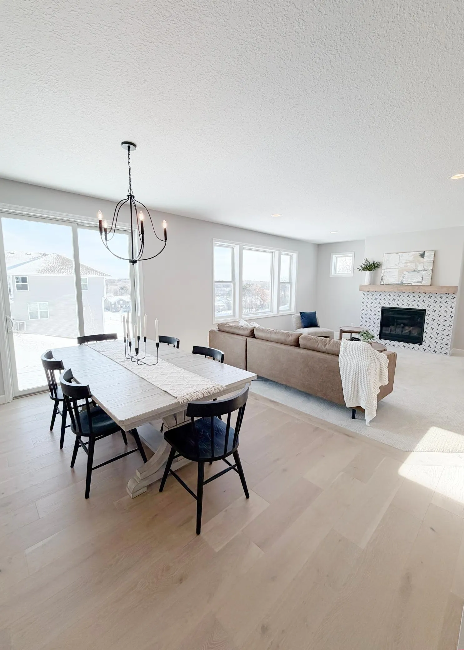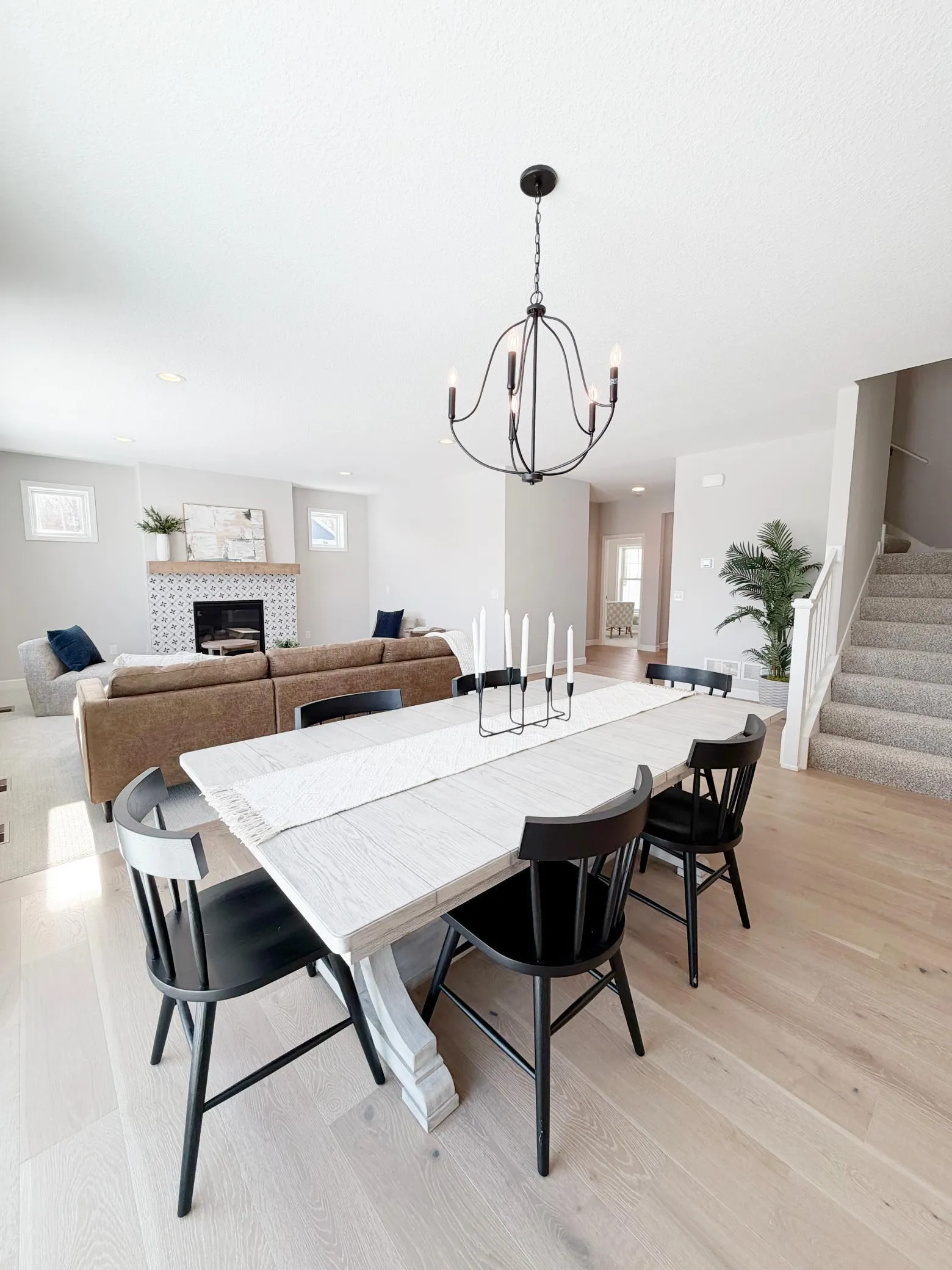 The main level is an open-concept layout, connecting the living, dining, and kitchen. A bedroom and 3/4 bath on the main level.