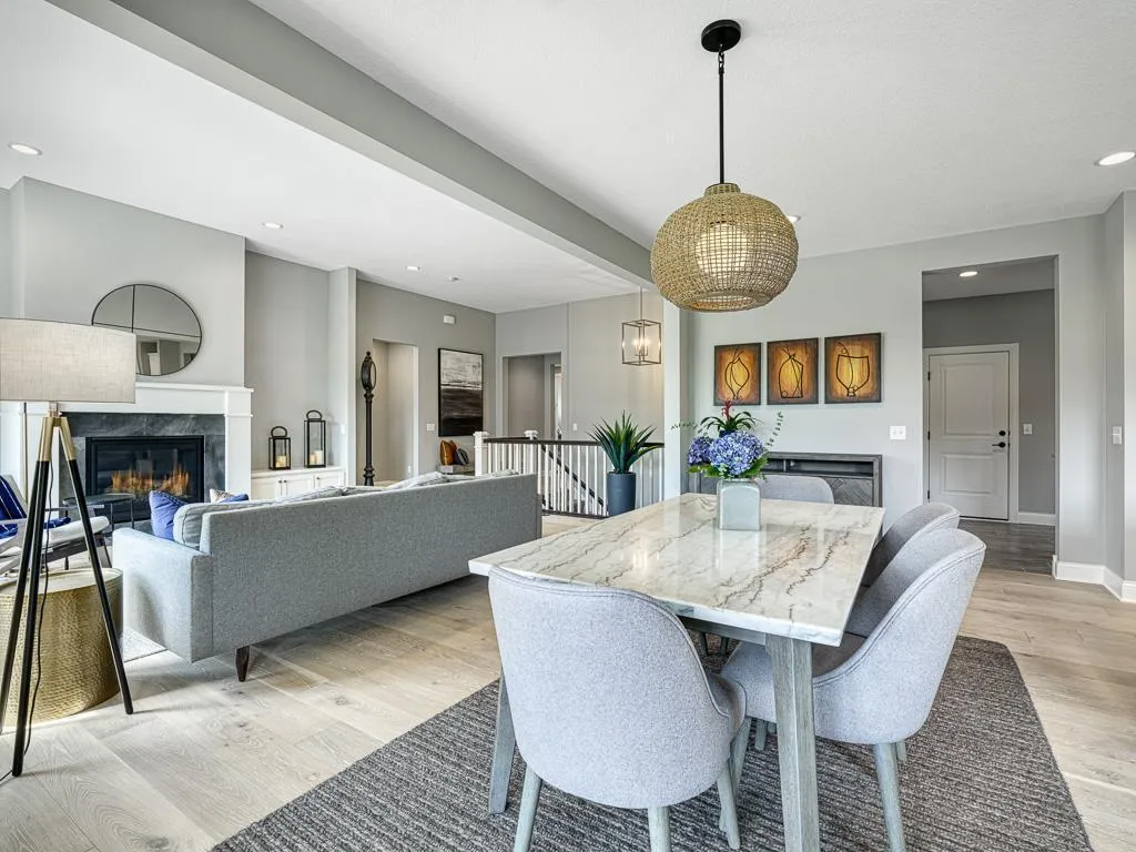 Better than new construction! Welcome to 4169 Gable Ct, a stunning 3-bedroom, 3-bathroom home offering luxurious one-level living. Built in 2022, this thoughtfully designed home blends style, comfort, and functionality in one of Woodbury’s most desirable communities. The main level boasts volume ceilings and a seamless layout featuring a chef’s kitchen with quartz countertops, stainless steel appliances, a tiled backsplash, and a walk-in pantry. Just off the kitchen, the sunroom offers peaceful views and floods the home with natural light while the generous mudroom and laundry room add to the home’s convenience. The private primary suite provides easy one-level living with backyard views, a beautiful 3/4 bath with double vanity and tiled walk-in shower, and a large walk-in closet. The finished lower level expands your living space with a cozy family room, gas fireplace, bar area, dedicated exercise room, office, and a third bedroom with walk-in closet—perfect for hosting guests. Outside, enjoy a beautifully landscaped backyard with an expansive paver patio ideal for relaxing or entertaining. Arbor Ridge offers a neighborhood park and an association-maintained pool to enjoy summer fun!