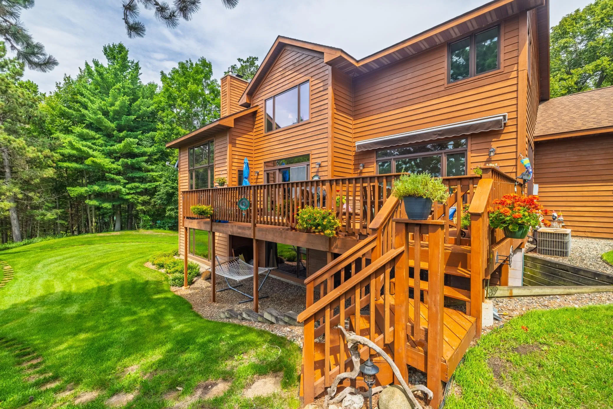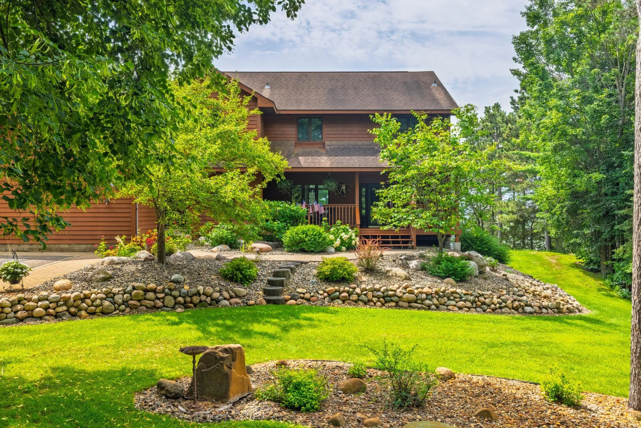 Stunning Big Sand Lake Home with 150’ of Prime Sandy Frontage. This beautifully designed home offers over 4,800 sq ft of finished living space across three levels, thoughtfully crafted for both comfort and entertaining. From the moment you arrive, the welcoming covered entry and expansive split-rock wood-burning fireplace set the tone for this warm, lodge-style retreat. The spacious main level features an open-concept living area, a generous kitchen with center island and ample cabinetry, and convenient main-floor laundry. With 4 bedrooms and 5 baths, there’s plenty of room for family and guests. The upper level includes three bedrooms, including a private primary suite with a large bath, soaking tub, and walk-in shower. The fully finished walkout lower level is designed for relaxation, complete with a second oversized fieldstone fireplace, large family room, cedar sauna, and outdoor hot tub—perfect for unwinding after a day on the lake. Recent updates include new windows and refreshed flooring on the main and second levels. Outside, a blacktop driveway leads to both an attached triple garage and a detached triple garage, offering extensive storage for vehicles, boats, and lake gear. Enjoy breathtaking lake views from the lakeside deck, equipped with an awning for sunny afternoons. Set on 1.43 acres with mature trees, beautiful landscaping, and 150 feet of pristine lake frontage featuring a sandy beach, this property delivers privacy, quality, and year-round enjoyment. Come experience this extraordinary Big Sand escape—your lakefront lifestyle awaits.