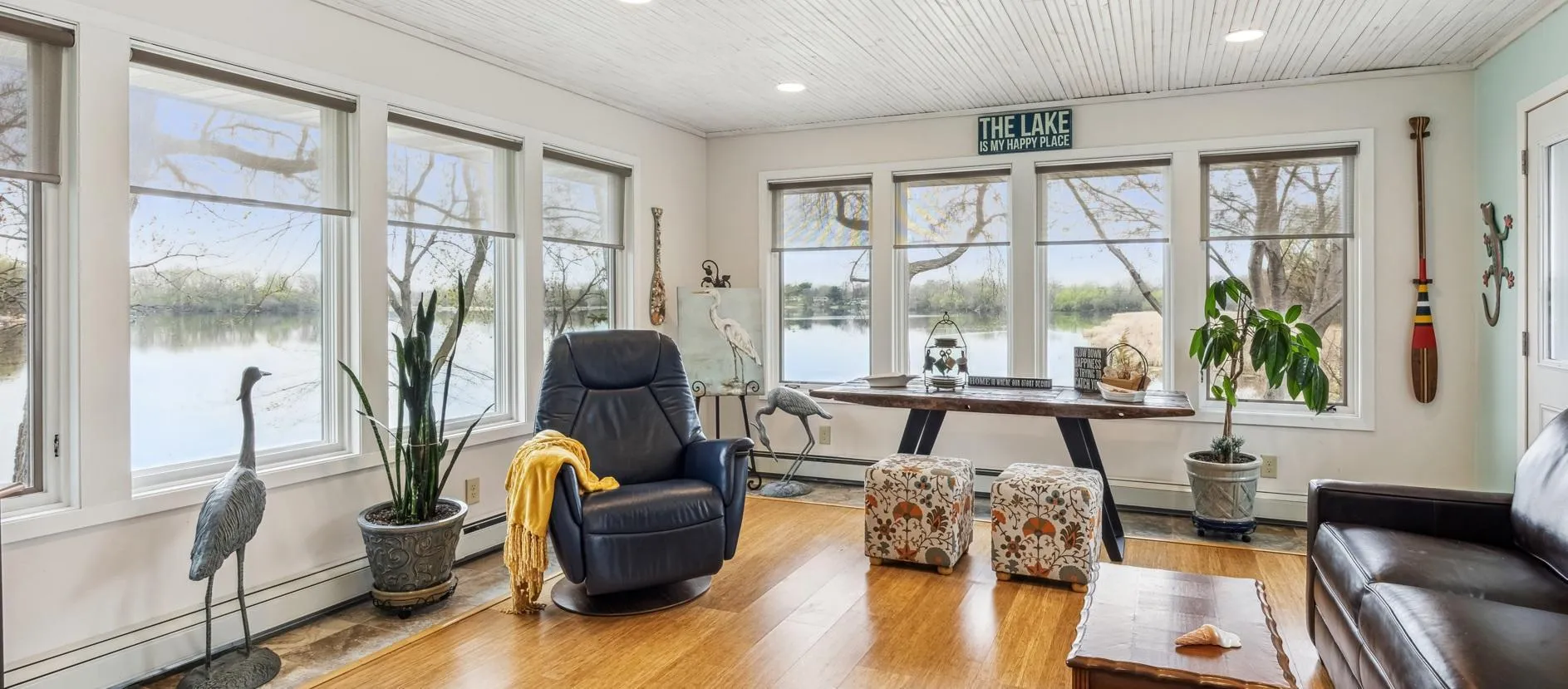 High quality updates and features make for a like-new, lakefront, modern and conveniently-located home! Featuring: Open, flowing floorplan, 2 master suites, new stainless appliances, center island kitchen for 5+, new roof 2024, many new mechanicals 2023, central air, 3 car garage, vaulted ceilings, hard surface counters, plantation blinds, updated windows, beautiful bathrooms and a pleasant, sunset-facing sunroom. Outside find gorgeous stone & paver patios, landscaped gardens and nice privacy due to the home & lot orientation. Expansive 2,845 sq.ft. main level allows for one-level living and generous rooms throughout. Possible mother-in-law-like apartment. Sunset views of the lake from most major rooms of the home. Great combination of nature & activity on this 125 acre fully recreational lake on 214 acre chain of 3 connected lakes. Beautiful, lakefront property just minutes to downtown while enjoying nature at its best. The BEST lake value in the northern suburbs!