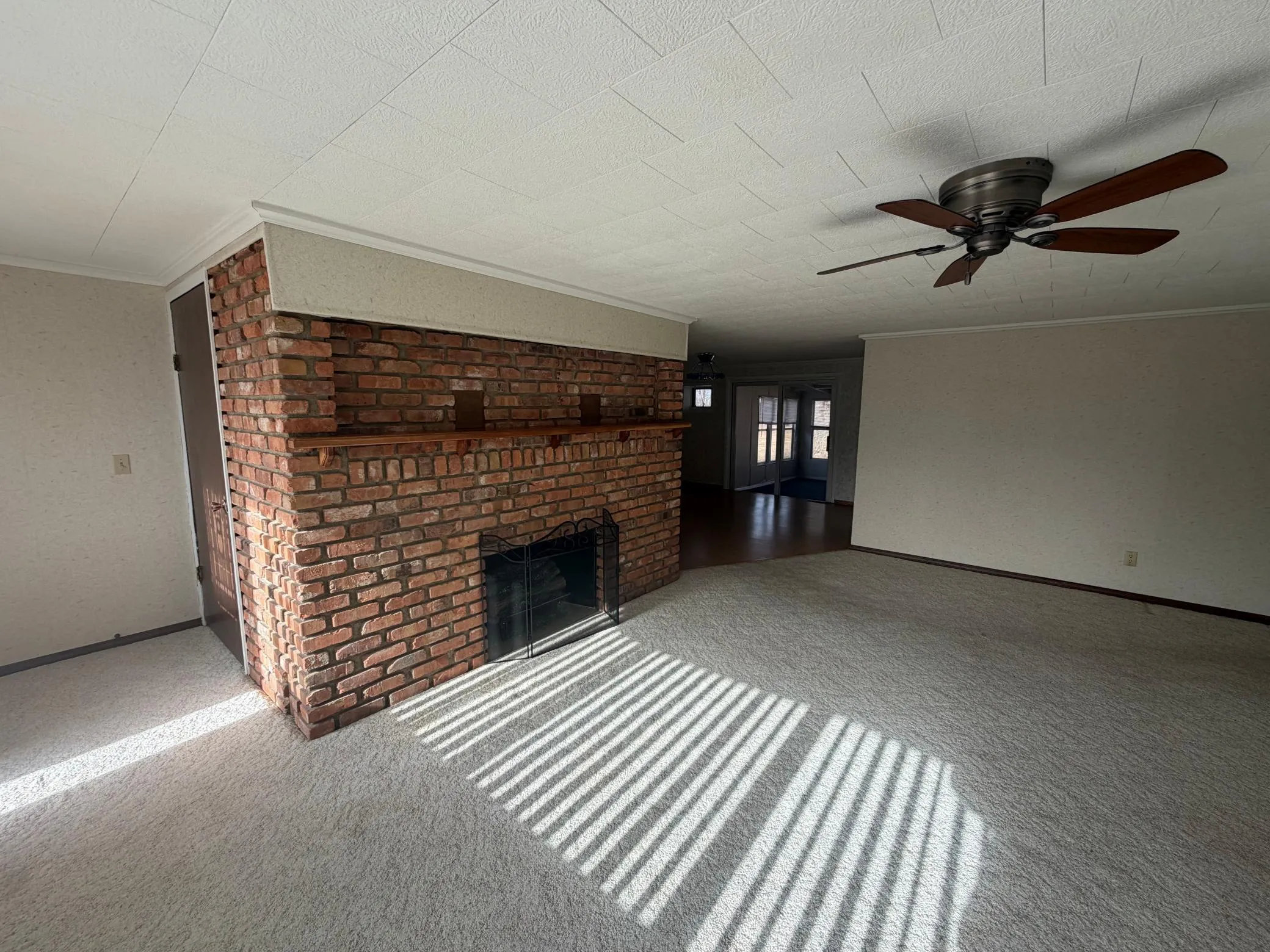 This 3 bedroom brick home has no steps into the house, it offers three bedroom, one 3/4 bath, galley kitchen with all new appliances, dining room, formal living room, family room. The home has no basement, the home is made of brick so very sturdy home with newer steel roof. It has a sunroom off the back leading to a large park like yard. The two sheds are very nice , one for a shop and the other is a utility shed., Lots of room for enjoyment! All the newer appliances will stay with the home .