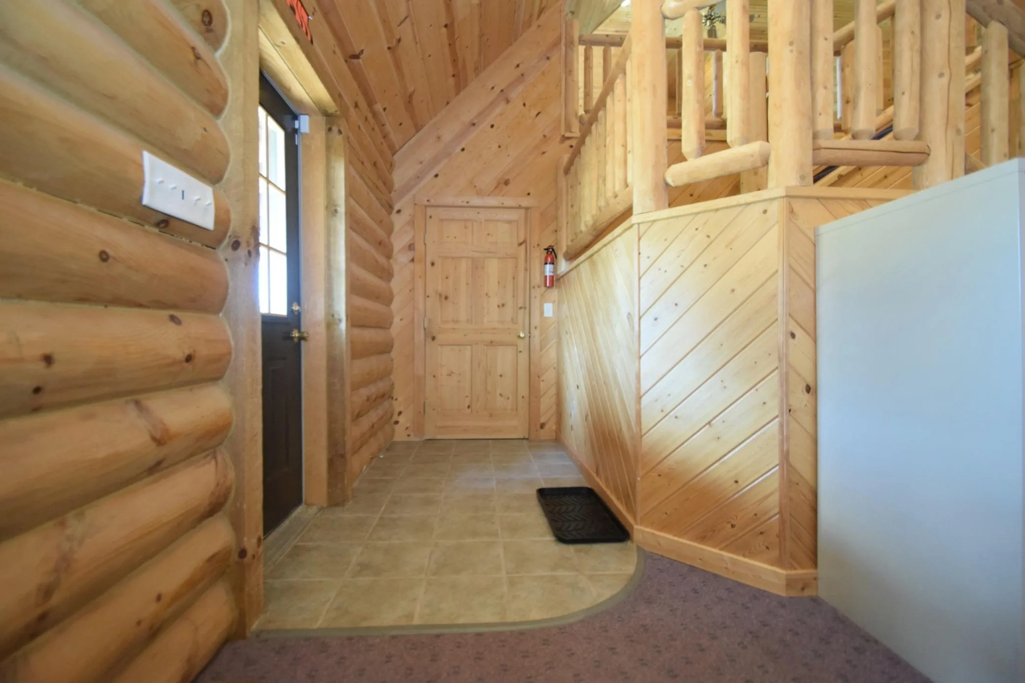 Unique opportunity! Stunning log structure on north bound frontage road in Siren, 2.17 wooded acres! High quality Tomahawk Log & Country Home with energy log construction with the appearance of authentic full hand hewn log with the ultimate energy efficiency of 2×6 construction. Building has been used as a real estate office and is just waiting for your enterprise! Gorgeous greatroom w/log interior, pine tongue & groove, vaulted ceilings and a fieldstone gas fireplace from floor to ceiling with a log mantle. Charming gridded windows, 4 separate main fl. offices, kitchen area, ½ bath, log staircase & spacious open loft offers a host of uses. Full basement offers great storage, ability to finish and roughed in for addt’l. bath. Charming front entrance with covered porch, handicap accessible ramp & large parking lot. If you’re looking for a commercial space that reflects the “Up North” ideal along the Hwy. 35 corridor, then look no further!