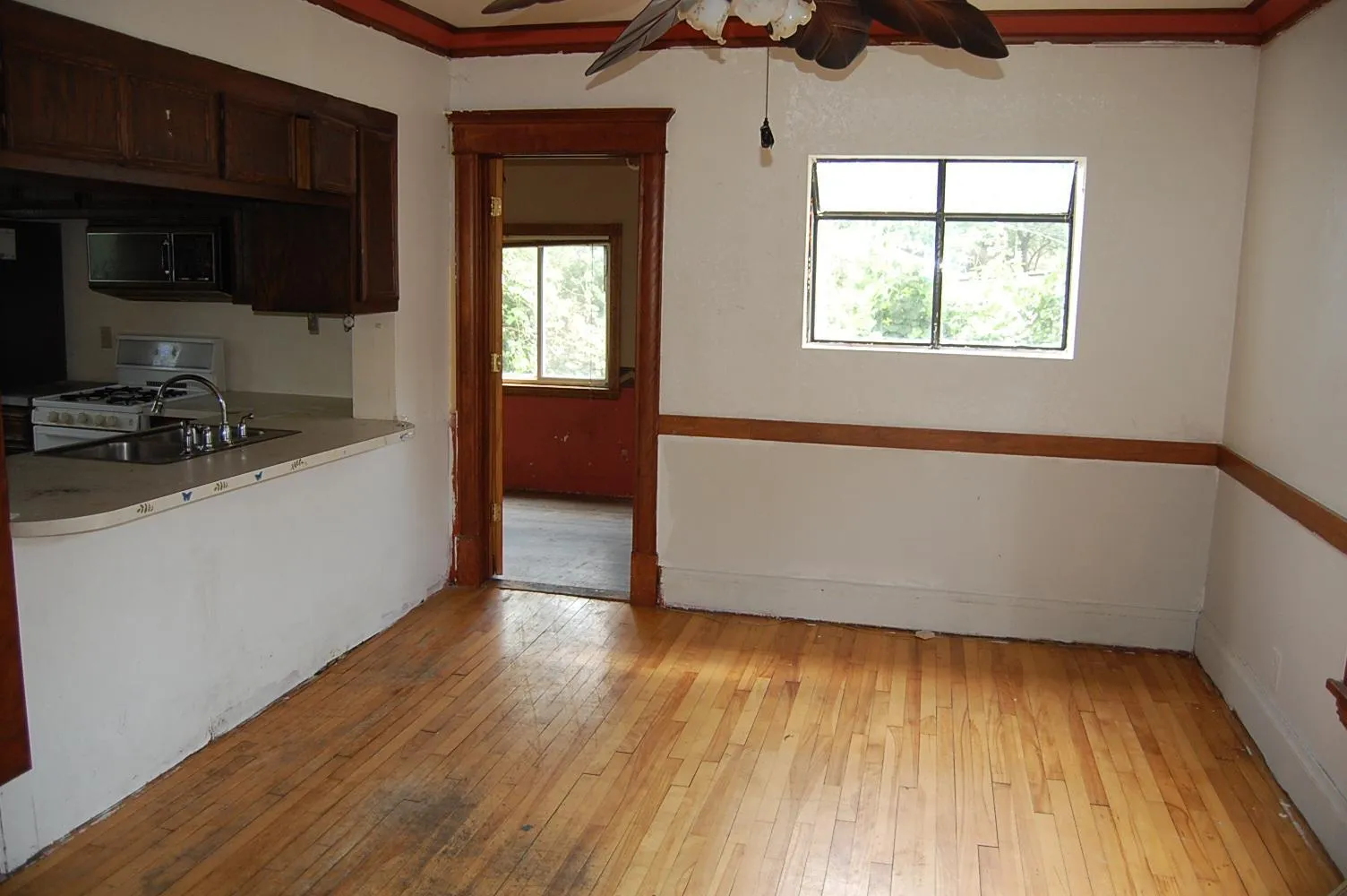 Terrific Uptown location close to the lakes and so convenient to everything. Great opportunity to build equity here. Two story home with two bedrooms, 1 1/2 baths. Second floor also has a den or office area. Main level formal dining and living room with oak floors. Nice sized kitchen. Front porch plus a sun room on the back. Come with your updating and decorating ideas to make this your next home.