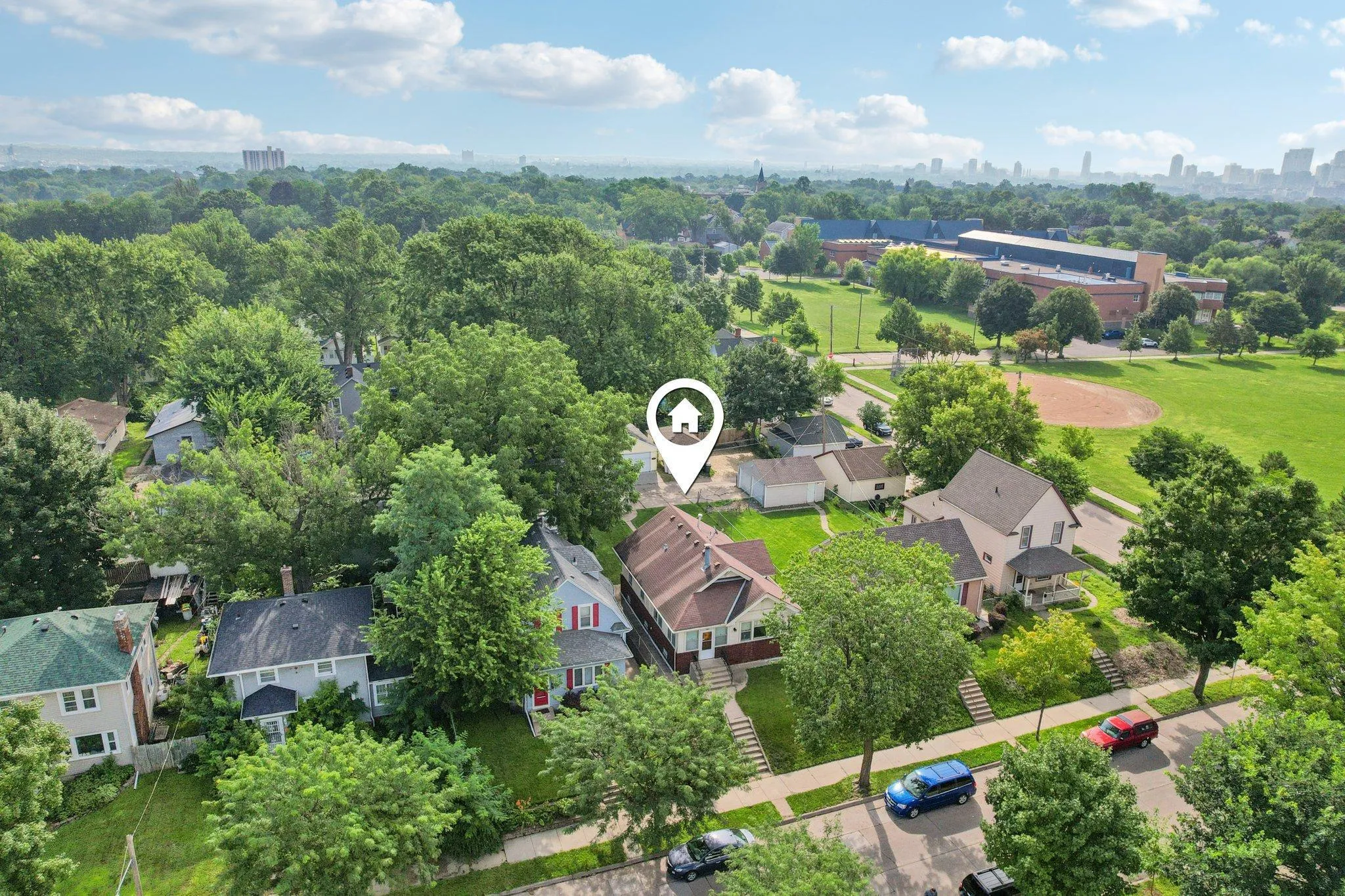 This location is hard to beat! You’re only three houses from Jordan Park, where you can take a quick swim in the community pool, relax in the open green space, or spend time outdoors on a sunny afternoon. The grade school is just as close, making everyday life incredibly convenient. Inside, this 1921 bungalow is filled with charm. The enclosed front entry welcomes you inside to the living and dining rooms, along with both main-level bedrooms, all featuring gorgeous wood floors. Big picture windows and high accent windows let the sunlight pour in, and the built-ins with natural woodwork make the space feel warm and inviting. The wood-burning fireplace with its mantle and hearth is ready for cozy nights in. You’ll find a functional kitchen, the basement is technically unfinished only because it doesn’t have ceiling but has endless potential, and an attic with loads of storage and even more potential to finish. A detached garage provides secure parking and extra storage, and LeafGuard gutters help keep exterior maintenance simple. With parks, a pool, and a school practically outside your door, this is a home that makes every day feel just right.