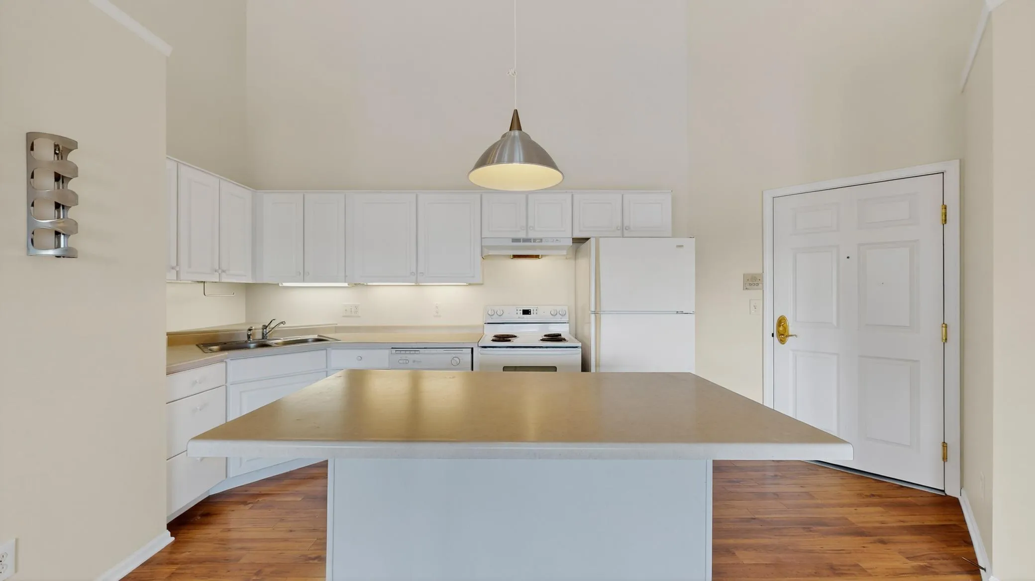 Discover this inviting two-bedroom, one-bathroom condominium featuring an open, spacious floor plan with soaring 18’ vaulted ceilings in the living room and kitchen. The main level offers a large bedroom with an oversized walk-in closet, while the second floor hosts another generously sized bedroom with its own oversized walk-in closet, providing privacy and flexibility.