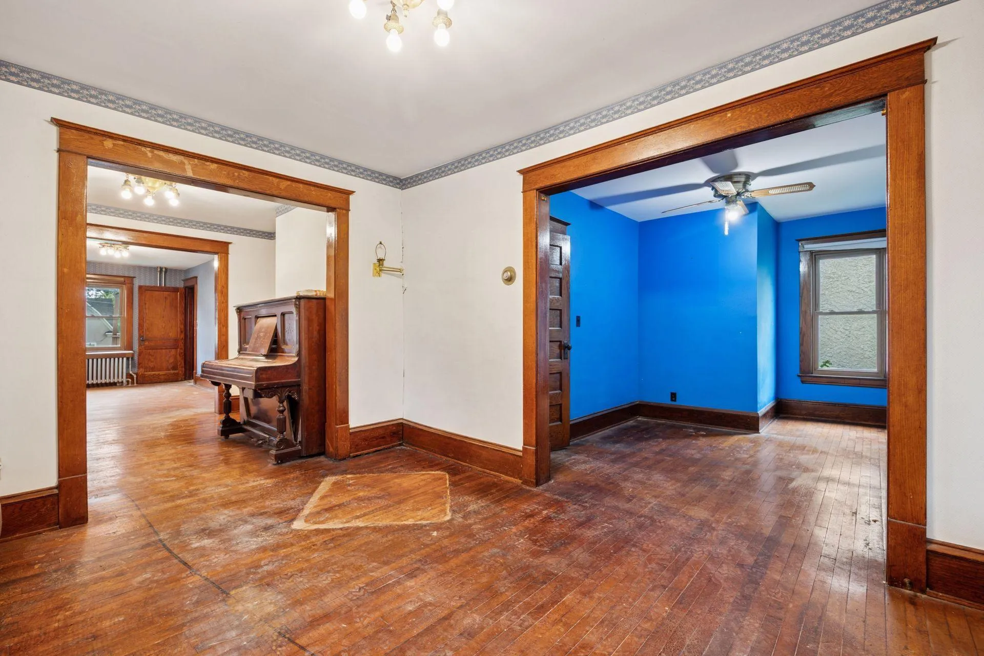 Beautiful two story duplex with charming front porch, original woodwork, and hardwood floors. Recent updates include NEW ROOF and gutters, NEW drain tile system in basement with battery backup on sump pump, new siding and window wraps on 2 sides of home, and the boiler heating system has been cleaned, serviced, and certified. Many of the interior rooms have been professionally painted this year. A large deck overlooks the fenced back yard (recently enhanced by the removal of an excessively large tree ) with a storage shed and space for a future garage or off-street parking space. The main floor has one bedroom, a living room, a music room, a formal dining room, a bonus den/office space, a kitchen, and a full bath. Upstairs has a large living room facing west, with two bedrooms, a kitchen, and a full bath. Conveniently located near Lowry Ave N for convenient shopping, dining, and North Regional Library services, with easy access to downtown and NE Minneapolis. A designated bike path on Emerson Ave N makes this location ideal for cycling enthusiasts/bike commuters. Certificate of Approval has been issued for the Truth in Sale of Housing report (no required repairs).