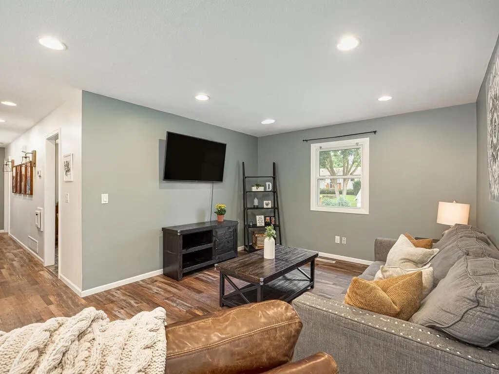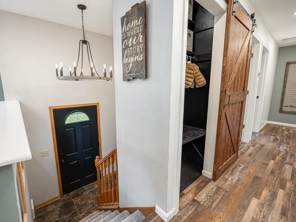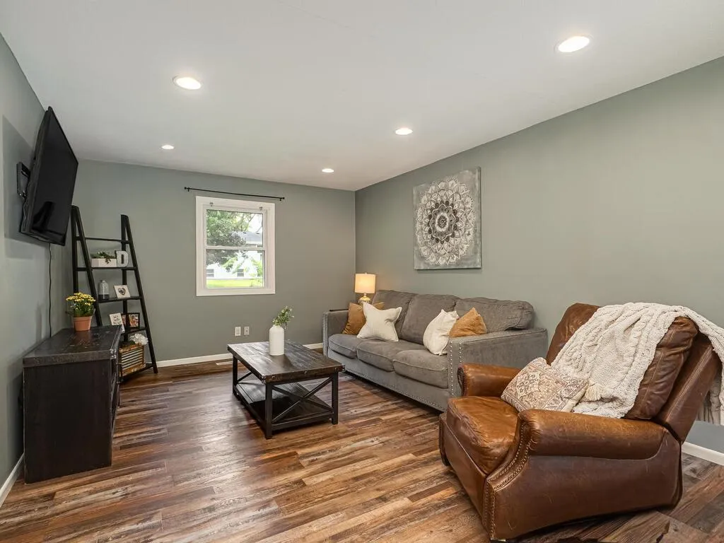 This beautifully updated 4-bedroom, 2-bathroom home offers the perfect mix of style, comfort, and function—completely move-in ready. Inside, you’ll find modern updates throughout, including new LVP flooring, white trim, fresh paint, recessed lighting, stylish fixtures, a barn door, and a cozy shiplap accent wall in the primary bedroom. Both bathrooms were remodeled in 2020, and the kitchen features black stainless appliances, including a new dishwasher (2025). Major updates include a new roof, seamless steel siding, exterior stone, gutters, and garage door (all in 2021), windows (2018), water softener (2018), and water heater (2022). The oversized 2-stall garage is insulated and wired for a future heater. Outside, enjoy the new rubber mulch (2025) with a 12-year color warranty, plus a fully fenced backyard with a deck and patio—perfect for relaxing or entertaining. Located on a quiet dead-end street, just steps from Morningside Park and walking distance to two more parks, with Elm Creek Park Reserve nearby. Don’t miss this turn-key gem in fantastic Champlin!