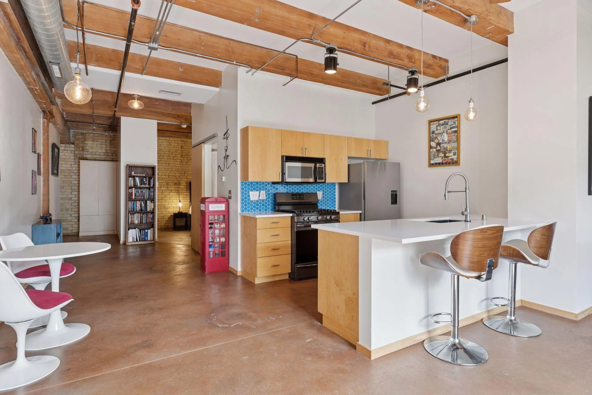 Don’t miss this rare opportunity to own a chic, corner-unit loft in the sought-after River Park Lofts—where historic character meets modern sophistication. This beautifully updated space features exposed brick walls, original timber beams, and a semi-private entrance for added privacy and charm. The updated kitchen shines with Cambria quartz countertops, a sleek backsplash, and high-end stainless steel Fisher & Paykel appliances. The bathroom has been thoughtfully upgraded with a Cambria quartz vanity, and a new Miele washer/dryer for added convenience. Custom storage solutions by Twin Cities Closets enhance functionality throughout, including a fully customized bedroom closet. This loft blends timeless architectural details with refined, contemporary updates—perfect for those seeking a one-of-a-kind urban living experience. The monthly homeowners association fee includes heating, A/C, cable, internet, snow removal, water + sewer, security, and all other amenities in the building- homeowners responsible for the electricity. The River Park Lofts building offers its residents safety and security, along with its luxury features, including concrete floors, exposed brick + wood beams throughout, an exercise room, party/community room, and entry into the skyway. Convenient location to Mears Park, CHS Field, the Light Rail, Farmer’s Market, and numerous restaurants.