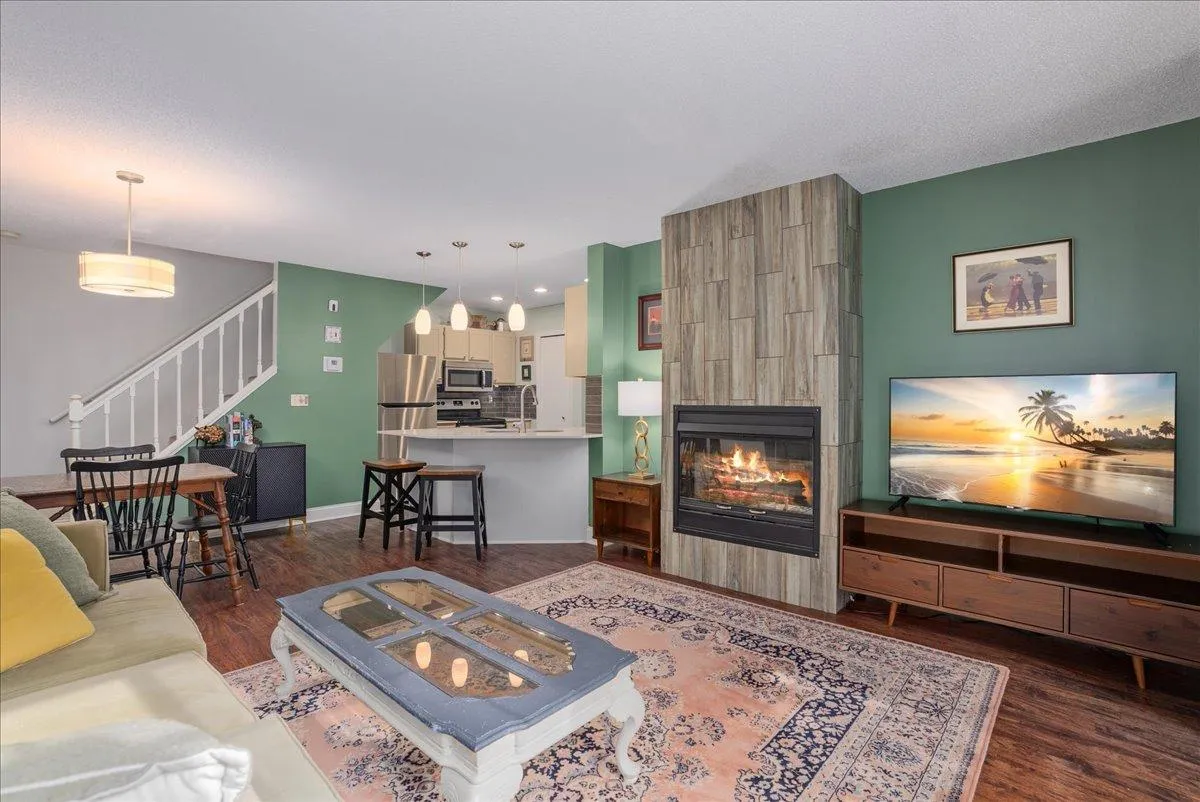 Welcome to this two-bedroom, one-bathroom condo set on a quiet, private street. The main level offers an open layout, combining the kitchen, dining, and living spaces for easy everyday living. The kitchen is equipped with stainless steel appliances and convenient access to the in-unit laundry and attached garage. The living room features a gas fireplace. The front patio overlooks the tree-lined surroundings, creating a comfortable setting year-round. Upstairs, you’ll find a large primary bedroom with plenty of closet space, a second bedroom, and a full bathroom.