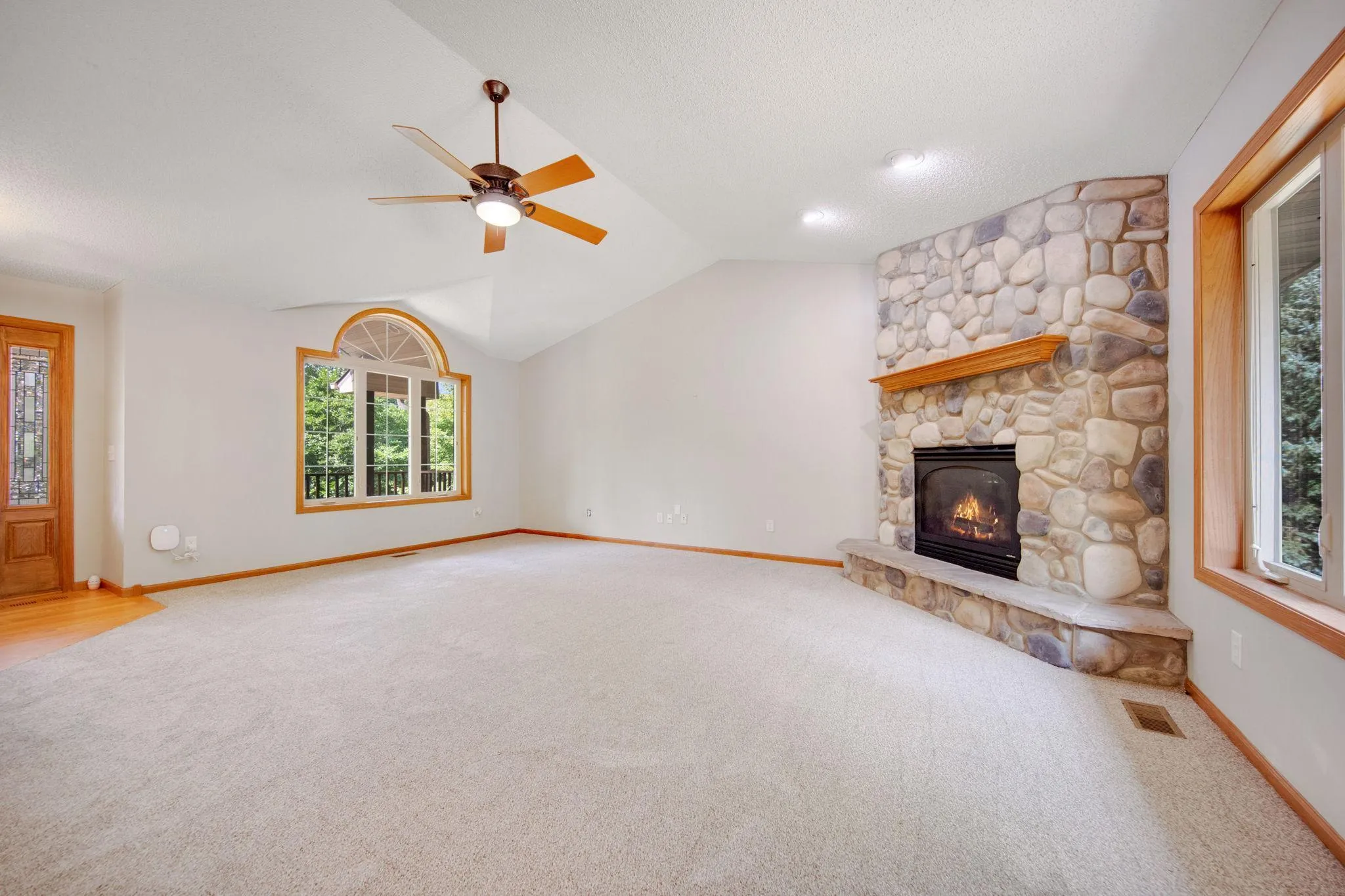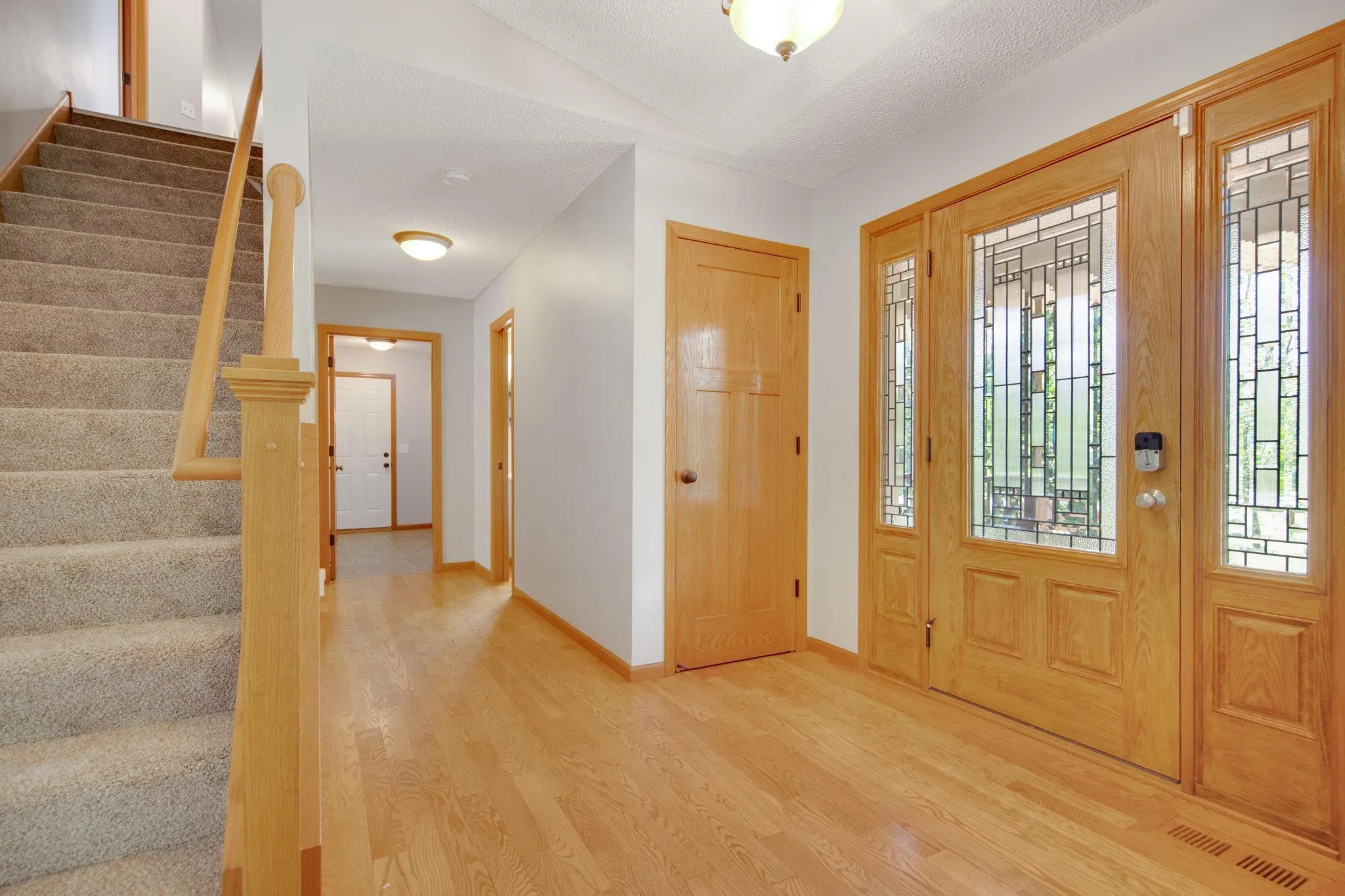 Welcome to 23901 Leo Street NE in beautiful Stacy, MN — a stunning, move-in-ready home perfectly situated on a private 2.8-acre corner lot. This spacious and thoughtfully designed property offers over 2,900 finished square feet of comfortable living space, with 4 bedrooms, 4 bathrooms, and features that combine modern convenience with peaceful country charm. As you approach the home, you’ll be greeted by a long, private driveway leading to a generous 4-car attached garage. Step inside to an open and light-filled main level featuring vaulted ceilings, gleaming hardwood floors, and brand-new carpet throughout. The living room is anchored by a cozy fireplace, while large windows flood the space with natural light. The kitchen is truly the heart of the home, complete with a center island, stainless steel appliances, and direct access to the maintenance-free deck — perfect for summer grilling or enjoying quiet sunsets. Upstairs, you’ll find three generously sized bedrooms, including the luxurious primary suite featuring vaulted ceilings, a walk-in closet, and a private in suite bath. Pamper yourself in the jetted tub, or take advantage of the dual sinks and separate shower for a streamlined morning routine. The upper level also includes a convenient laundry room — no more hauling clothes up and down the stairs! The walk-out lower level is ideal for work, play, or hosting guests. It features a built-in desk area perfect for remote work or homework, plus large windows that keep the space bright and inviting. The fourth bedroom and additional bathroom make this level an ideal retreat for guests or older children. Outside, enjoy the space and serenity that only a large lot like this can offer. Whether you’re entertaining, gardening, or simply enjoying nature, the expansive yard provides endless opportunities. Located just minutes from I-35, this home offers the perfect balance of peaceful living with easy access to nearby conveniences.