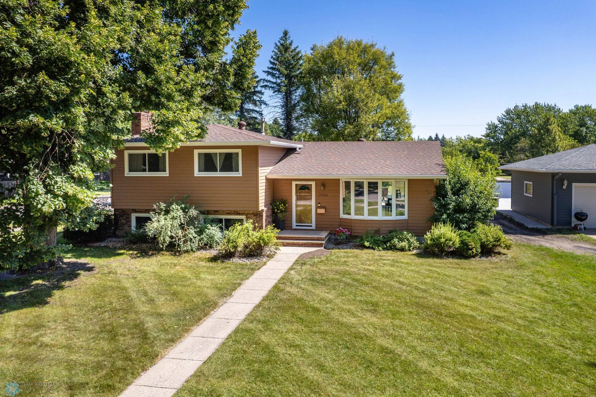 Beautifully updated 4-level split located in a prime North Fargo location on desirable Edgewood Drive within the Longfellow School District! Situated on a corner lot backing to open green space, this home offers an open main floor with vaulted ceilings, wood beam accents, hardwood floors, and a remodeled kitchen featuring granite countertops, tile backsplash, refaced cabinets with roll-out drawers, and updated appliances. Upstairs, you’ll find 3 bedrooms and a Hollywood-style bath with a jetted tub/shower and an oversized linen closet. The lower-level family room is perfect for relaxing by the fireplace with its brick accent wall and also includes the fourth bedroom, a ¾ bath, and access to the oversized two-stall attached garage. There is room to grow in the partially unfinished basement with potential for a 5th bedroom by adding an egress window, plus a large laundry area with a sink, storage, and a flex room. Enjoy the dual-zone heating, central air, nearly all newer windows, and a poured foundation, along with a complete exterior refresh in 2005 including steel siding, shingles, fascia, soffits, gutters, front door, garage door, and patio doors. Recent 2025 updates include a new gas water heater, dishwasher, and microwave. Enjoy outdoor living from the massive composite deck overlooking green space. Low special assessments!