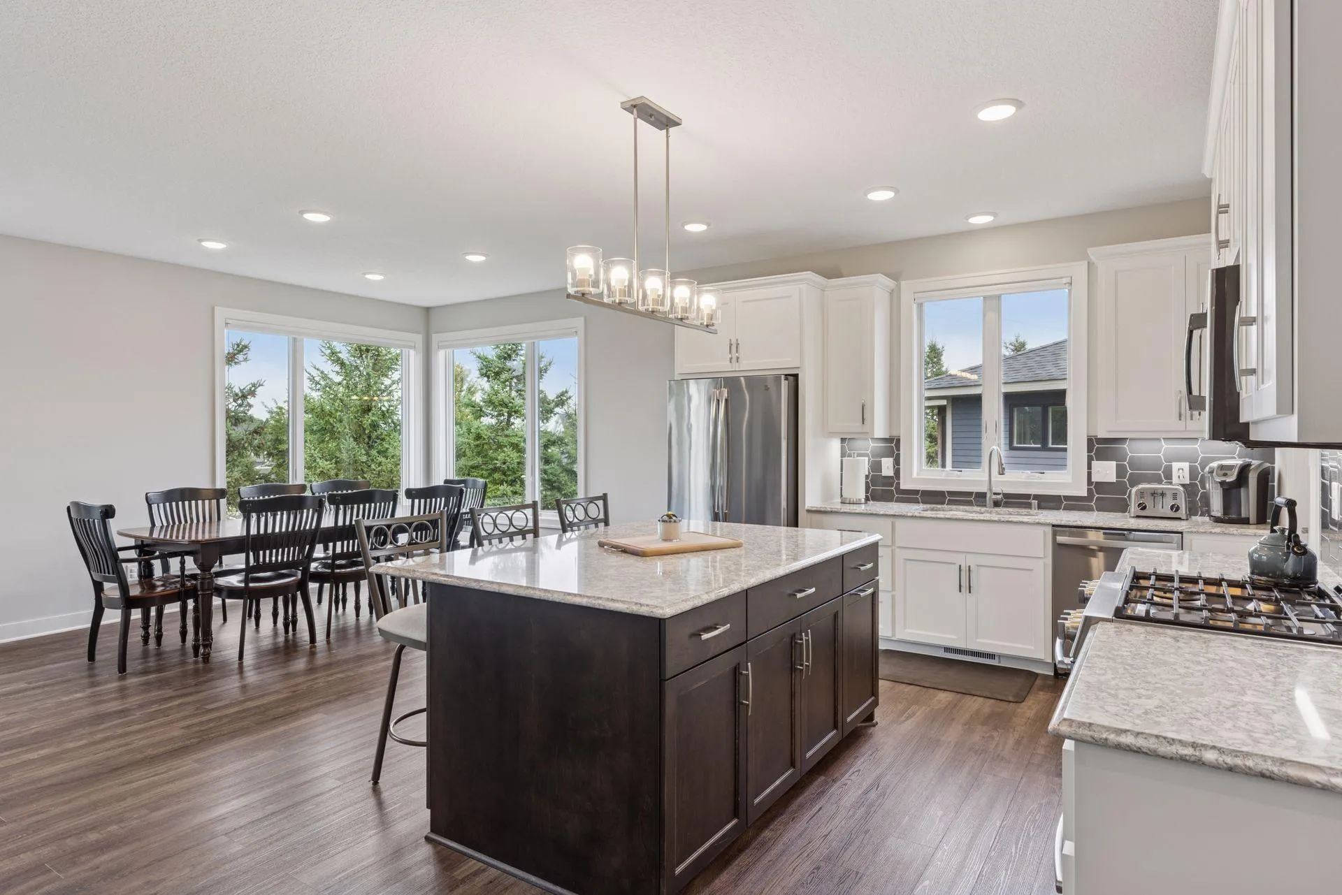 Welcome to effortless elegance and functional design in this beautifully crafted home by Cardinal Homebuilders. Designed with comfort and convenience in mind, this residence offers a sought-after, main level living layout that blends sophisticated style with everyday ease. Step through the welcoming foyer into a versatile front bedroom or office, paired with an adjacent powder room featuring textured wallpaper for a stylish touch. From there, a spacious, wide-open living area offers a seamless blend of kitchen, dining, and family room spaces, perfect for ease of living and entertaining. In the dazzling kitchen, Cambria countertops gleam amongst a trendy tile backsplash, white cabinetry, and stainless steel appliances, while the large center island provides ample workspace and a walk-in pantry offers that desired extra storage. The informal dining area flows into the cozy family room, where a floor-to-ceiling stone surround gas fireplace is flanked by rich built-in cabinetry, creating a warm and inviting focal point. Retreat to the main-level Owner’s suite and find a peaceful haven with its private ¾ en suite with tile surround shower and a spacious walk-in closet and bonus shoe closet, both with handy organization systems. Plus, the laundry/mudroom off the attached two-car attached garage adds functionality with thoughtful extras and ample space. As you make your way to the finished lower level, you’ll be pleased to find an expansive family/recreation room, complete with another stone surround gas fireplace, built-ins, and an impressive wet bar that’s ideal for hosting game and movie nights. In addition, two oversized bedrooms, each with walk-in closets, share a full bath and provide flexible space for guests, a home gym, office or hobby room; and don’t miss the generous storage space throughout. Outside, enjoy serene outdoor living on the covered front porch or the maintenance-free balcony deck in a backyard framed by mature pine trees for added privacy, not to mention an ideal location that’s just minutes from East Ridge High School, Woodbury amenities and major interstates.
