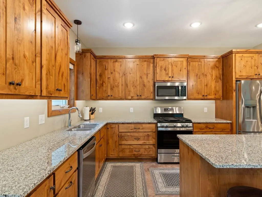 This thoughtfully designed 3-bedroom, 2-bath home combines comfort and style with granite countertops throughout, knotty alder cabinetry, and LP Smart Siding for long-lasting beauty. Enjoy the ease of main-floor living and the convenience of a spacious 3-stall garage, perfect for storing all your lake and golf toys. Additional features include: Anderson windows with shades for energy efficiency and privacy, Landscaped yard with in-ground irrigation system, Covered 14×12 patio plus an additional 40×20 patio — ideal for outdoor entertaining or simply relaxing in the serene surroundings. Whether you’re seeking relaxation, recreation, or a bit of both, this home offers the perfect blend of luxury and location. Don’t miss your chance to live the Breezy Point lifestyle!