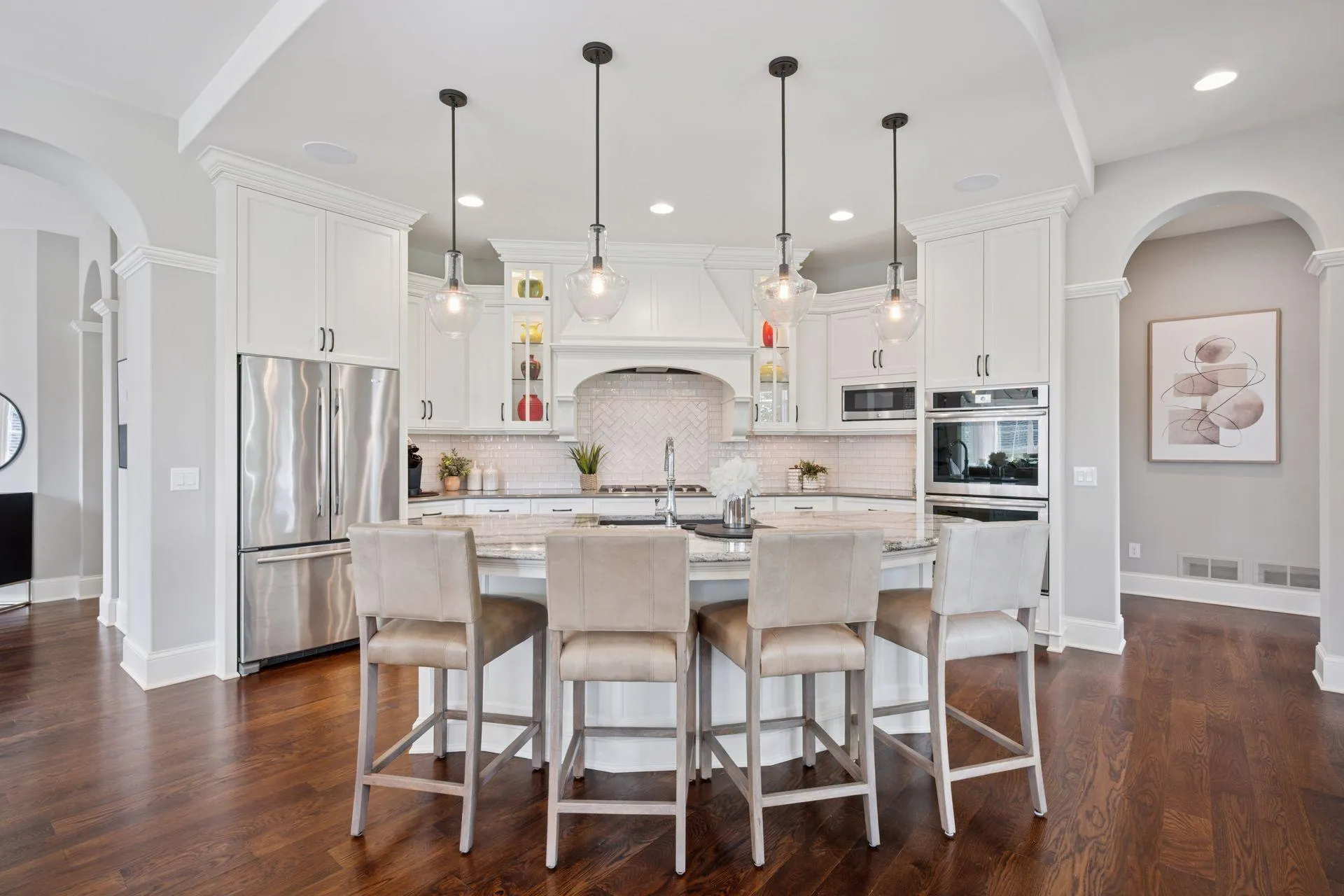This exceptional detached villa showcases timeless Charles Cudd architectural design, with over 3,800 finished square feet of sophisticated one-level living. The home offers 3 bedrooms, 2.5 baths, and an open floor plan designed for both elegance and comfort. The gourmet chef’s kitchen is a true centerpiece, featuring high-end stainless steel appliances, granite countertops, a center island breakfast bar, abundant cabinetry, and a walk-in pantry. The bright and inviting main-level living area includes a spacious office/den, arched openings, and a stunning four-season porch wrapped in floor-to-ceiling windows. The main-floor primary suite overlooks the golf course’s 3rd hole green and includes a generous walk-in closet with custom built-ins plus a spa-like en-suite bath with dual vanities, a walk-in shower, and a soaking tub. The fully finished lower level is perfect for entertaining, with two additional bedrooms, a full bath, a large family room, a full bar, and ample storage. Outdoors, enjoy sweeping golf course views from the expansive deck and the beautifully designed large paver patio—the ideal setting for gatherings or quiet evenings. Experience the pinnacle of country club living—luxury, lifestyle, and location all in one.