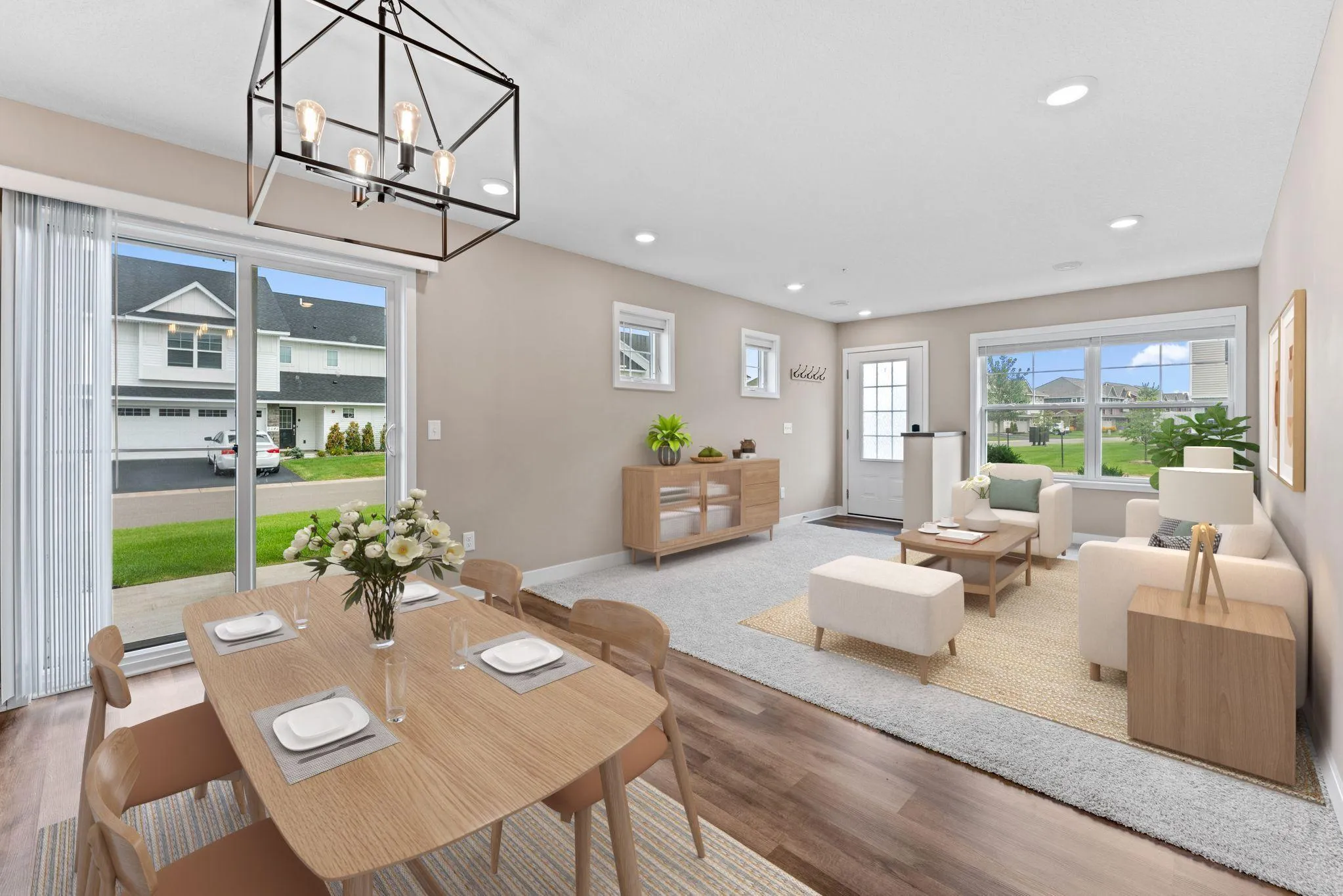 Move-in ready, quick close possible! End-unit townhome in the sought-after Watermark community of Lino Lakes, offering a well-designed floor plan with 3 bedrooms on the upper level, 3 bathrooms, and multiple living spaces.