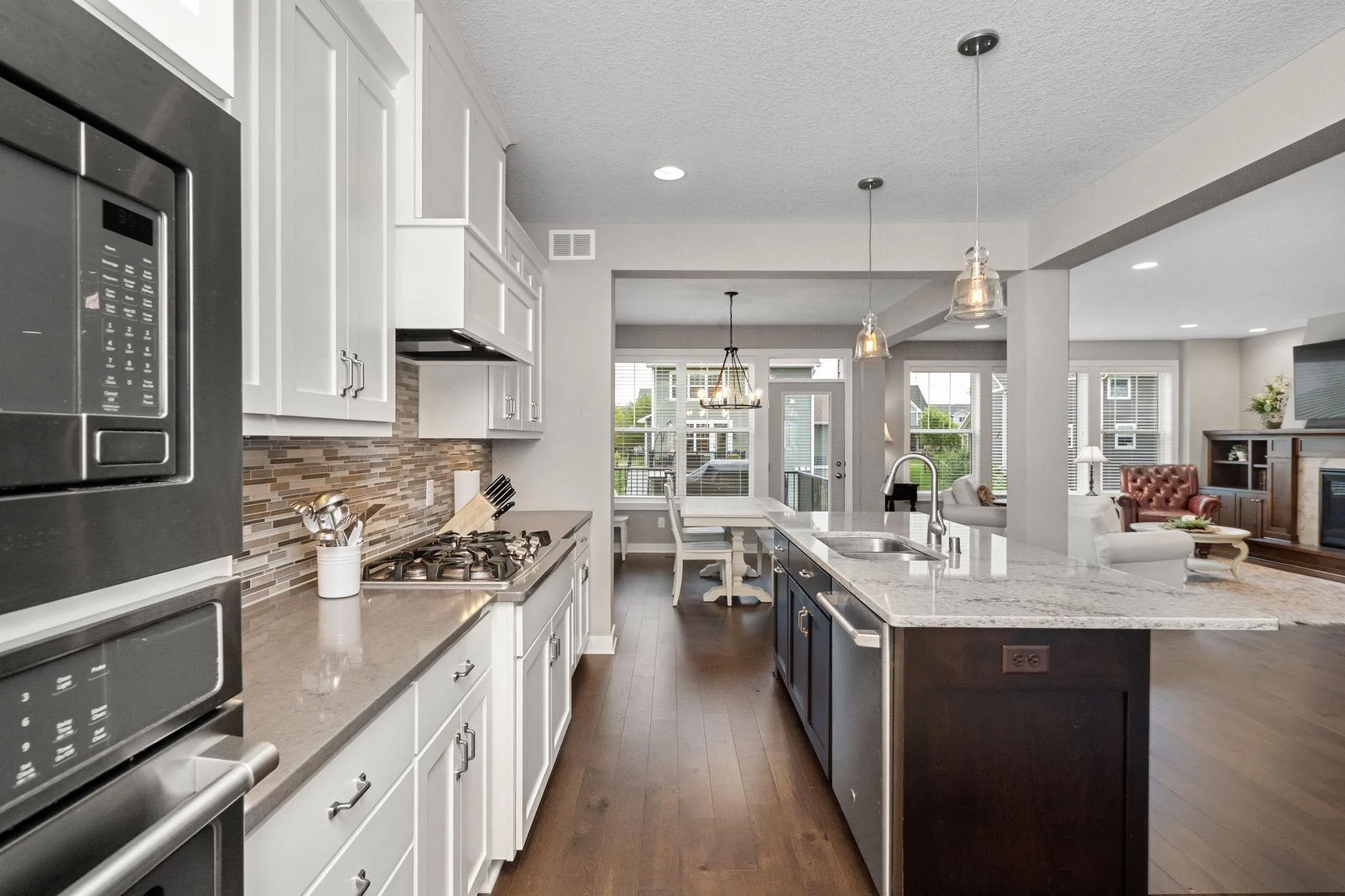 Stunning, highly coveted, Robert Thomas Home St. Croix model in beautify Fox Meadows, Hugo. Steps away from Oneka Ridge Golf Course! Perfect home for entertaining. Open, layout, w/ formal dining, butler’s pantry, den, and office! Fireplace w/built-ins in gathering room, gourmet kitchen w/ granite, SS cook-top, double ovens, custom cabinets, an wood floors throughout. Upper level features a private owner’s suite & bath, and 2 more, very spacious bedrooms w/large Jan & Jill Bath, walk-in closets upstairs, and additional loft area. Fully finished basement with fireplace and spacious bathroom. Landscaping & Irrigation, & fully fenced backyard more!