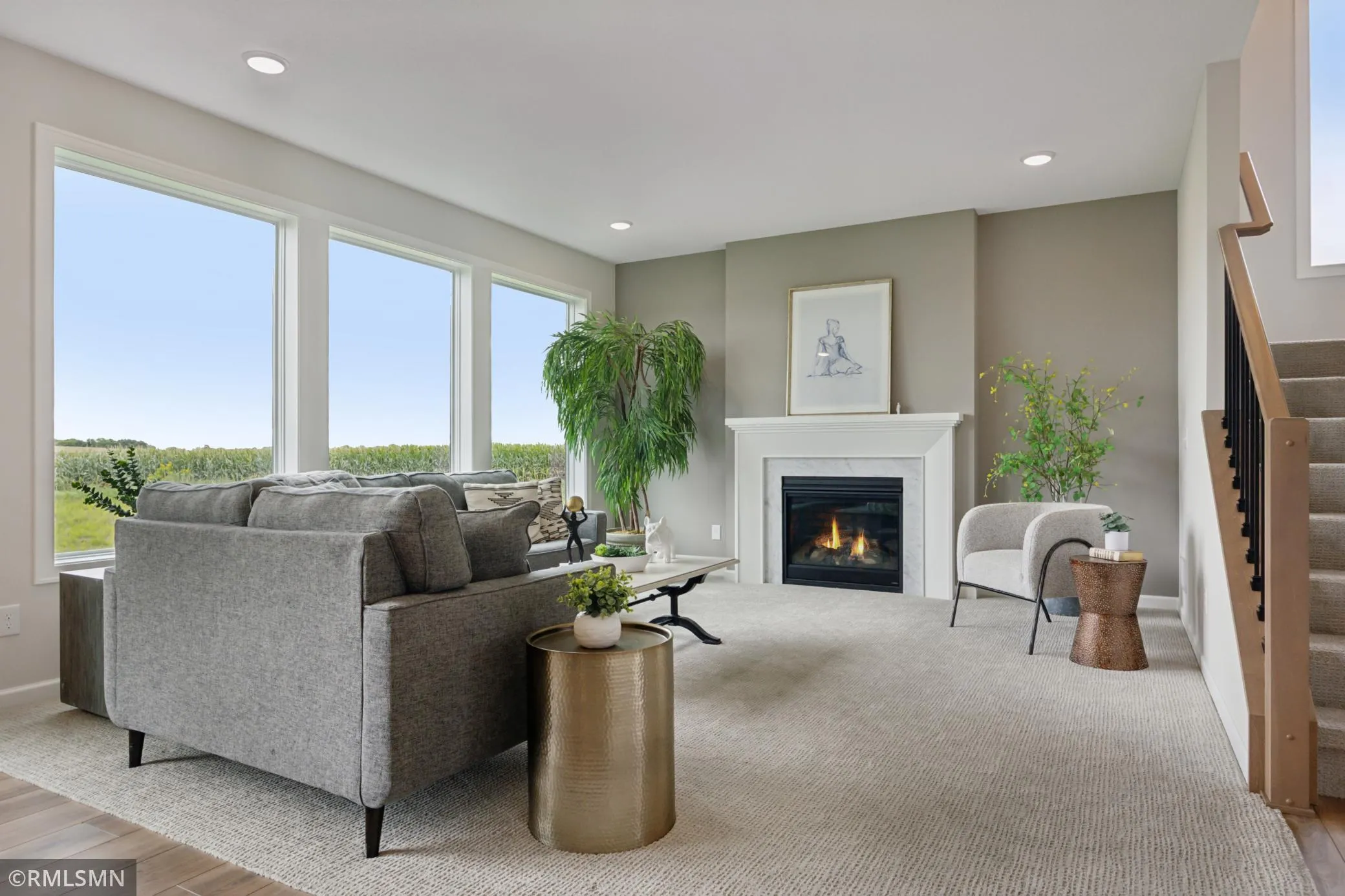 Located in Waypointe of Woodbury, this beautiful two-story home overlooks an 8-acre pond and has terrific southern views. James Hardie fiber cement siding and Pella windows make a great start. Main level has a private home office then open to family room with a gas fireplace, dining with eight-foot-tall patio door and spectacular kitchen with quartz counters and stainless-steel energy star appliances. Great sized mud room with built-in bench, closet and powder bath. Upstairs you will find four bedrooms and two bathrooms. Primary suite located with tremendous views overlooking the eight-acre pond.