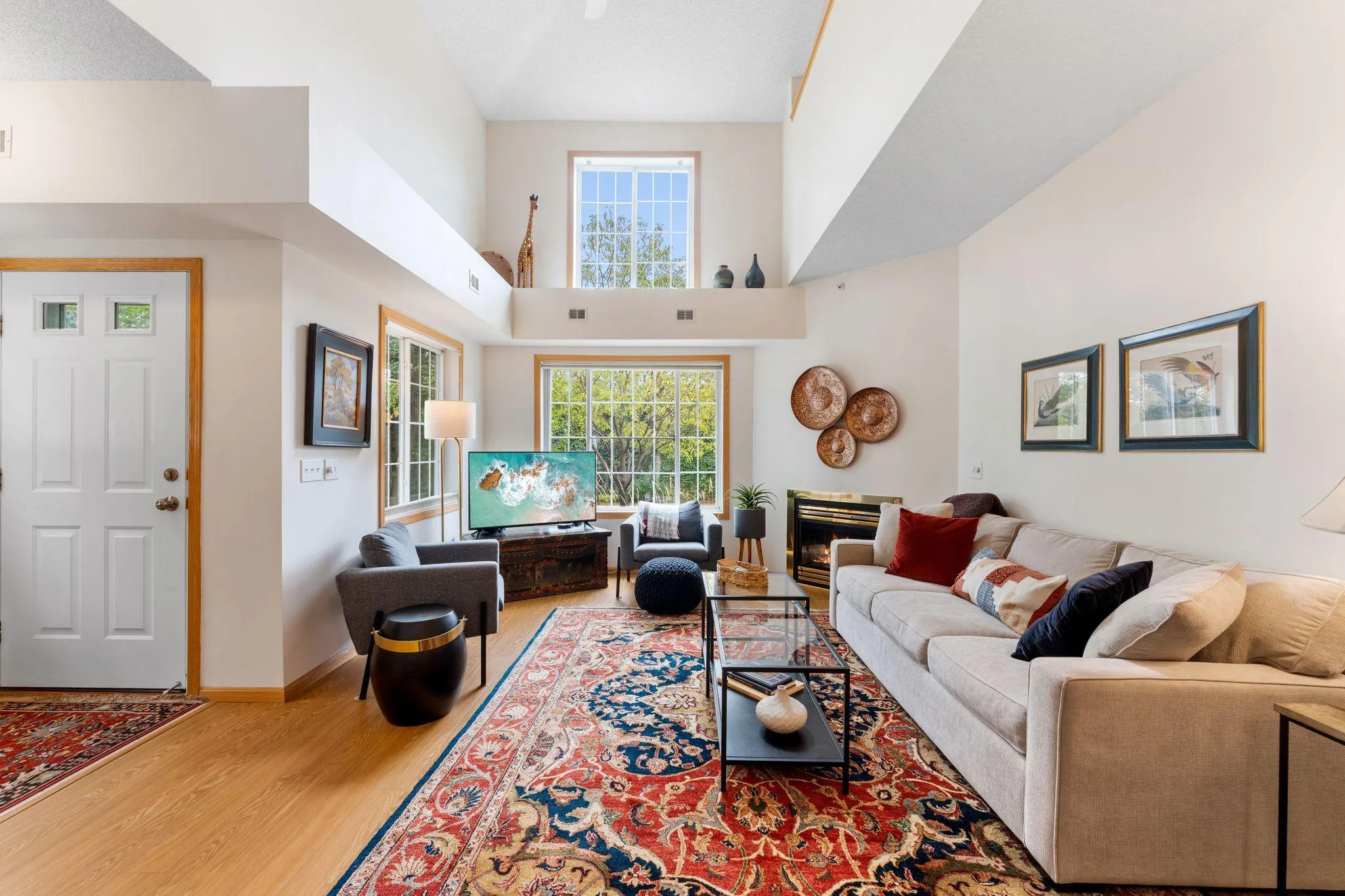 Rare opportunity to own a two-car end-unit townhome in Casteel Place! The main level welcomes you with an open living room filled with natural light, high ceilings, and anchored by a gas fireplace. The kitchen has been updated with sleek stone countertops, white cabinetry, and flows easily into the dining area overlooking the private patio. Laundry is also conveniently located on this level. Upstairs, discover a spacious primary suite with a walk-in closet, along with a second bedroom and a full bath featuring dual sinks, a whirlpool tub, and separate shower. A versatile loft offers additional flex space, ideal for a home office, workout area, or lounge. Fresh, bright, and exceptionally maintained, this home combines the feel of a single-family residence with the ease of townhome living.
