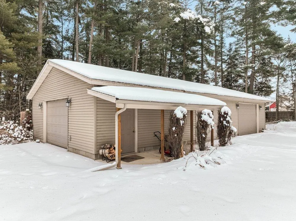 Step into comfort and charm in this inviting 2-story colonial featuring custom woodwork throughout. Located between Cameron and Rice Lake, and situated on 1.56 wooded acres just minutes from the Red Cedar River and Sawyer boat landing, this one-owner 1999 home offers the ideal blend of country privacy and convenience. Upstairs, you’ll find 3 spacious bedrooms, including a master suite with walk-in closet and private bath, along with an additional full bath. The main floor features a cozy living room with a wood-burning fireplace—perfect for crisp winter nights, a bright office with built-in cabinets—easily usable as a 4th bedroom, a generous kitchen/dining area with patio doors to the deck, convenient laundry/mudroom, and a half bath. The finished lower level offers a family room and a flexible bonus space—perfect as a game room, home gym, or whatever fits your lifestyle. It’s also plumbed for an additional bathroom, giving you room to grow. Outdoors, enjoy quiet mornings on the covered front porch, overlooking peaceful woods and well-kept grounds. An attached, heated 2-car garage and a 28×54 heated shop with 3 garage doors provide exceptional space for projects, storage, and hobbies. Country living at its finest!
