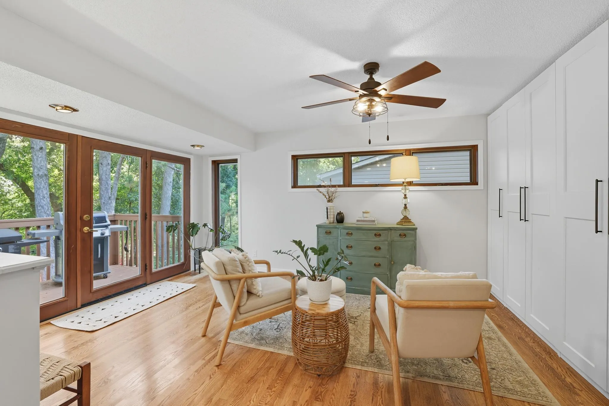 Welcome to 7357 Inwood Ave S. This spacious rambler sits on a private 0.3-acre lot with beautiful towering pines and wooded parkland views. Spend hours on the east-facing, massive deck! The main floor features an open concept kitchen, dining, flex area, perfect for entertaining. The kitchen features white cabinetry, granite countertops, and a walk-in pantry. Enjoy cozy meals in the dining room with a gas fireplace. The main floor living room features an additional large wood burning fireplace. Bedroom one features 22′ of window/doors, allowing you to immerse yourself in the natural surroundings. Bedroom two features a 1/2 ensuite bathroom. As you enter the lower level, you will love the open living area, moody family room, featuring another fireplace, and a flex space currently used as an office. The third bedroom features a 3/4 ensuite bathroom and large walk-in closet. This home is thoughtfully updated including brand new LVP flooring in the lower-level and a new garage door, all this home is missing, is you!