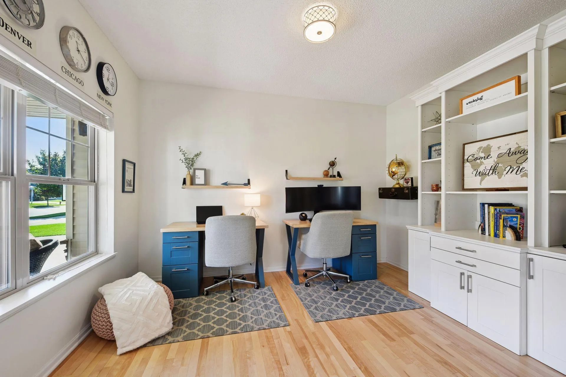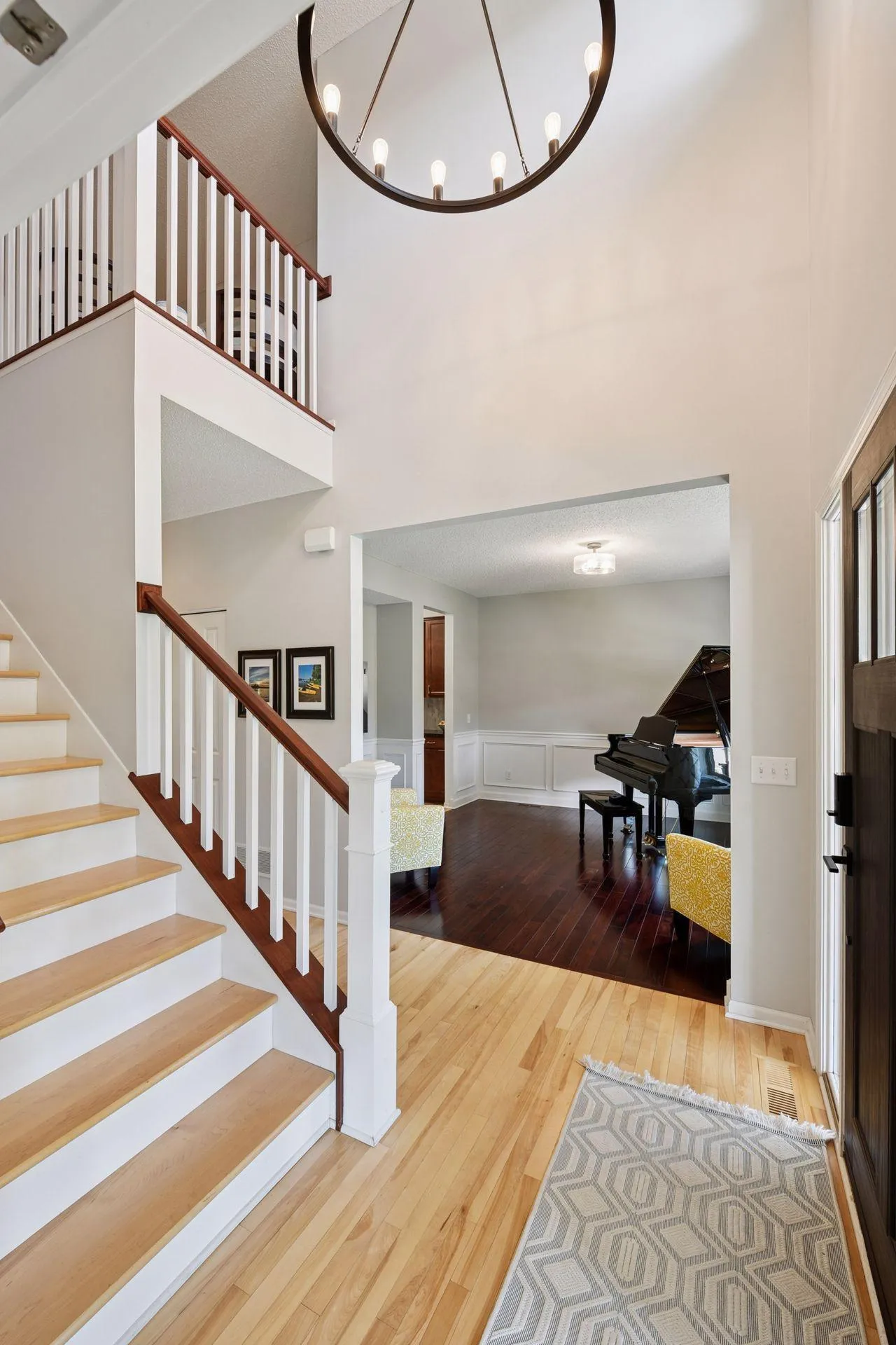 My goodness! Everything you need nestled on a gorgeous wooded lot with playable spaces and park down the street. Notice the darling curb appeal of this extensively updated home – inside and out – as you enjoy the landscaping and front porch (great for morning coffee or watching kids play in the neighborhood). Brand new siding, garage doors and roof give this home a beautiful, modernized look. Gracious entryway welcomes your guests with soaring ceilings and hardwood floors. Notice the convenient and quiet main floor office with built-in and French doors. Enjoy a gorgeous dining room with mahogany floors (presently a music room) which flows through into a helpful butler’s pantry. Your kitchen is updated with modern dark stainless-steel appliances, new backsplash and amazing views. Your informal dining has easy access to your stunning and spacious Brazilian hardwood deck. The family room is anchored by a fireplace with updated stone, cypress mantle and built-ins – what a great place to relax after dinner! Main floor is rounded out with powder room and mudroom featuring laundry and helpful lockers. Upstairs you’ll find a very spacious primary bedroom suite – so open it has room for a separate TV-watching area to decompress. Primary bedroom also features walk-in closet and refreshed primary bathroom (new faucets, lights, etc.). Three junior bedrooms upstairs make life so convenient – if you don’t need them all, use one as a gym or second office. Junior bathroom is also refreshed. Your finished walk-out LL has so much additional space – with another bedroom (notice the Murphy bed), media room (with seating included), great bathroom and huge amusement room with electric fireplace and walk-up bar. Your backyard is simply beautiful – a place to play with gorgeous, protected views, and wildlife. Don’t miss the fully insulated and organized garage that is EV plug-ready. Your neighborhood is a friendly enclave with a huge, fun park just down the street. Easy access to downtown Chaska, Target, Costco, Cub Foods, restaurants and more. Fun community events year-round in Chaska. Great schools and school choice.