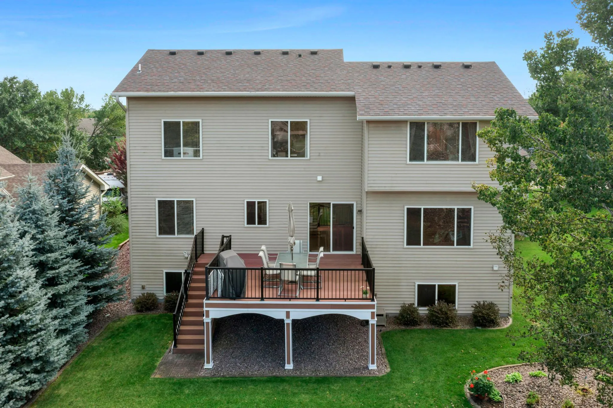 Spacious and well-maintained 4 bedroom, 3 bath two-story home with a 3-car garage, offering plenty of space and updates throughout. This home features a grand entry that opens to an inviting main floor with oak hardwood floors, a cozy gas fireplace, flex room, stainless steel appliances, and convenient main floor laundry. Upstairs you’ll find 4 bedrooms on one level, including a large vaulted primary suite with a private bath. Enjoy outdoor living on the large maintenance-free deck overlooking the beautifully landscaped yard with a flat backyard, oversized storage shed, front porch, front paver patio, and more! Additional highlights include a Kinetico water system with reverse osmosis, water softener, and iron filter. The unfinished lookout lower level provides excellent storage and endless potential for future living space. Move-in ready with numerous updates, this home is a must see! Come take a look today before its gone!