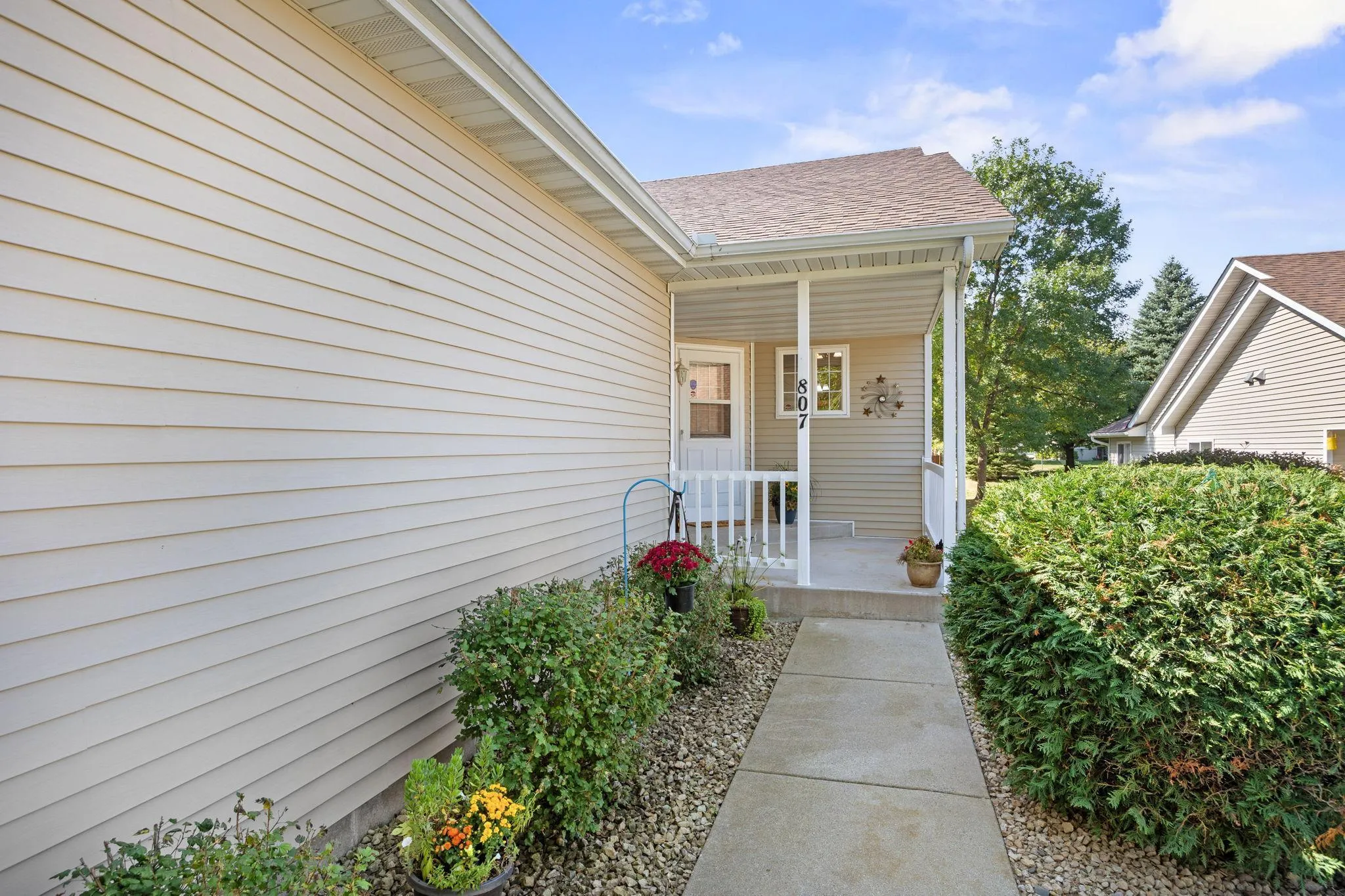 Welcome home to this beautifully maintained townhome on a quiet street, yet nearby local stores & restaurants! Enjoy a charming covered front porch, a spacious PRIMARY SUITE with a **HUGE WALK-IN CLOSET**, and a bright SUNROOM, perfect for relaxing. Freshly **PROFESSIONALLY PAINTED THROUGHOUT**, this home also features a **brand-NEW HIGH-EFFICIENCY FURNACE & A/C**, plus a brand-NEW DECK on the back or the COVERED FRONT PORCH for outdoor living. The **unfinished LOWER LEVEL** offers endless possibilities—finish it off to add square footage and instant equity. Use it now for your WORKSHOP & HOBBIES. Wait till you see the STORAGE! Don’t miss this MOVE-IN READY gem!