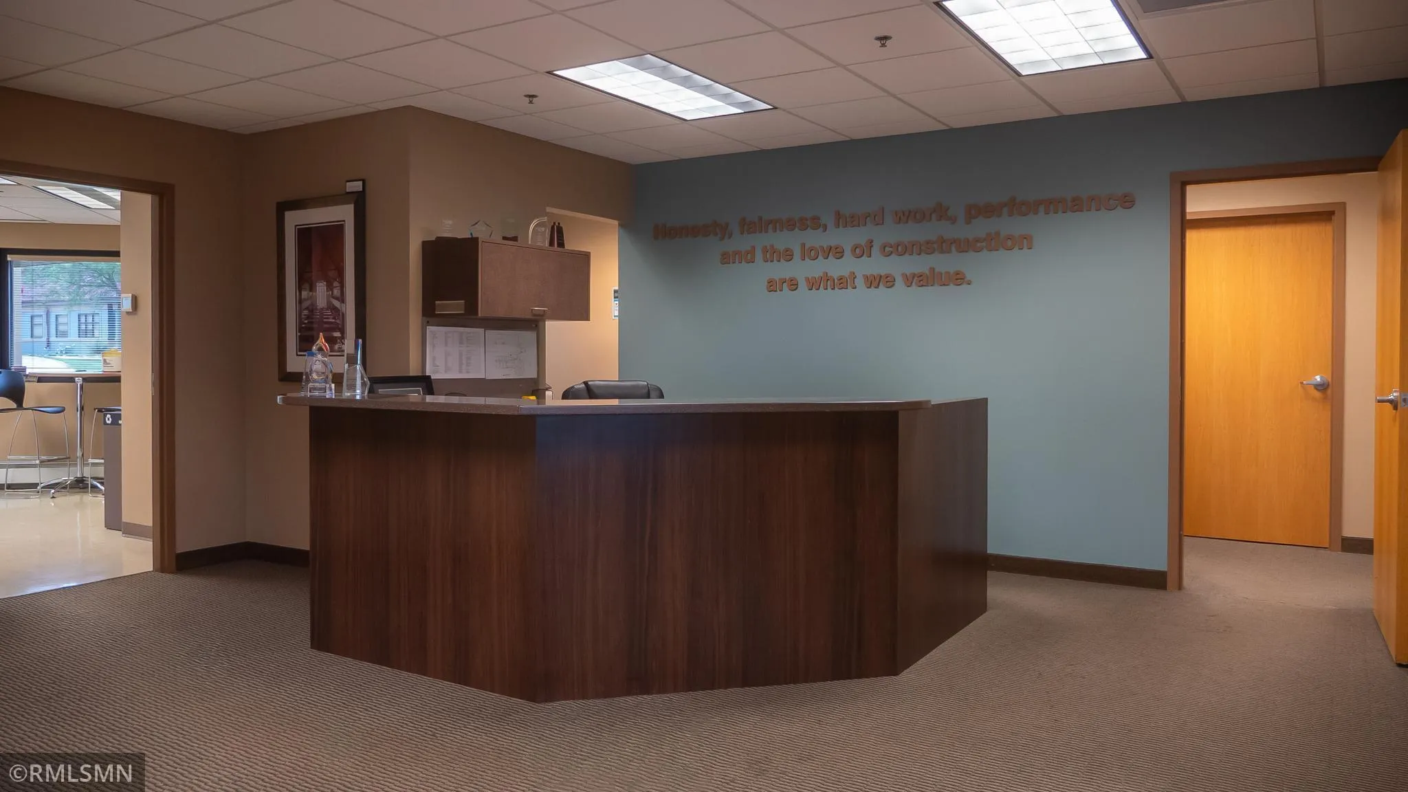The 3,328 SF office area includes a welcoming reception, multiple private offices, a conference room, break room, and storage areas—all designed for comfort and productivity. Large windows throughout the office space bring in abundant natural light, creating a bright and professional work environment.