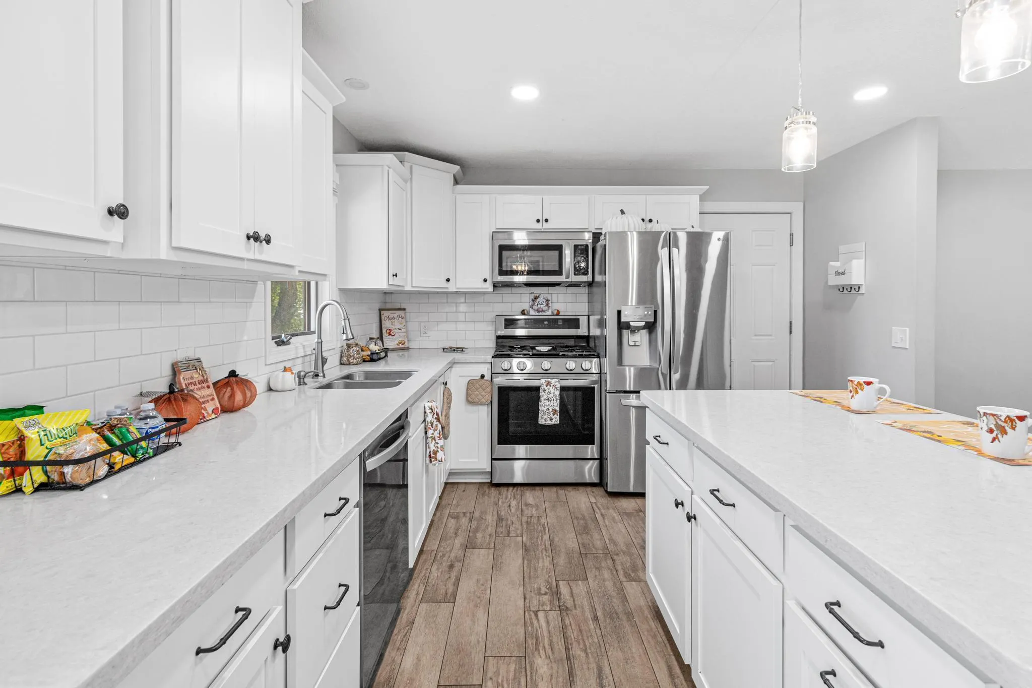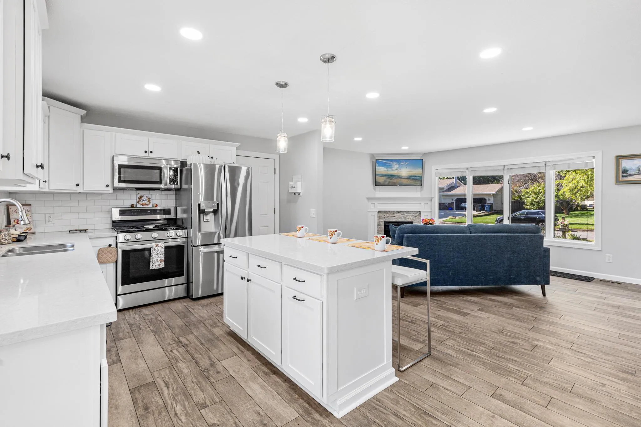 kitchen and living room were reimagined into a spacious great room that’s perfect for both gatherings and