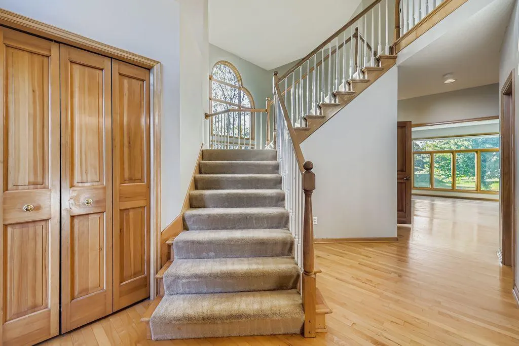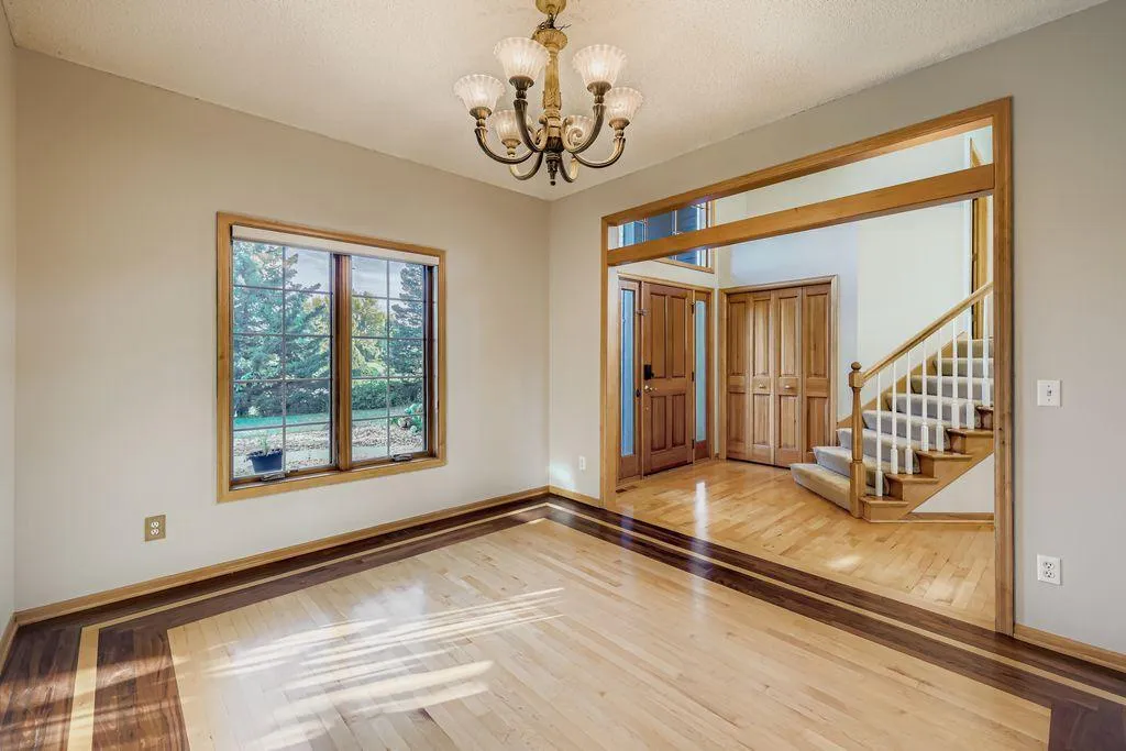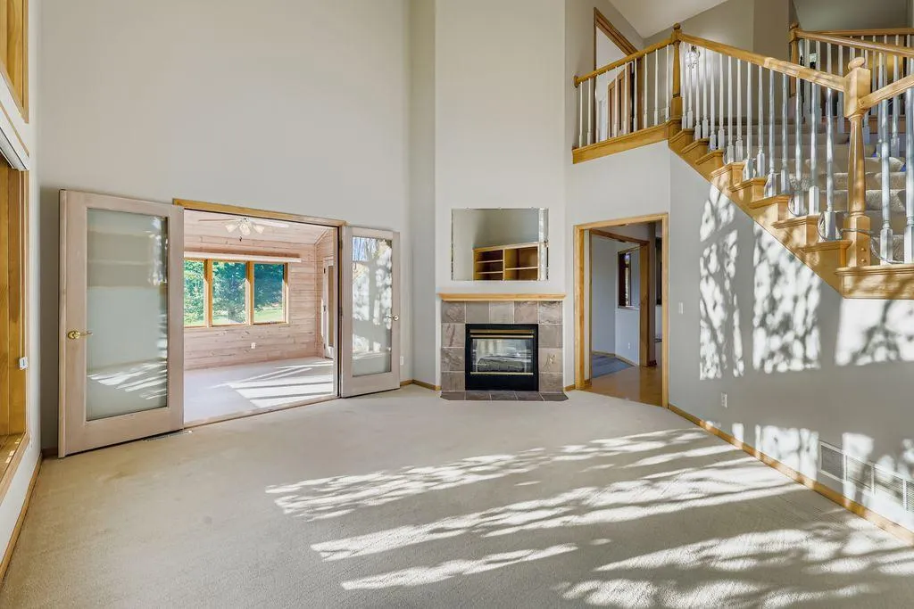 Motivated Seller. All the Benefits of Lakeshore Living—Without the Worries! Enjoy luxury, space, and privacy on this 2.95-acre lot with deeded access to beautiful Lake O’Dowd. Freshly painted 5-bedroom, 4-bath home features a functional open floor plan with soaring two-story ceilings and walls of windows. Valuable updates, including Marvin windows (2023) and a new roof and garage doors (2022). The home features a gourmet kitchen with granite countertops, a center island, and double ovens, opening to both a formal dining room and an informal dining space with a walkout to a deck overlooking the huge backyard with sweeping views. The two-story living room is a showstopper, while the 4-season porch offers a cozy retreat year-round. The upper level offers 4 bedrooms, including a huge primary with private bath and walk-in closet. The lower level is designed for entertaining with a rec room and wet bar, plus flexible space for a 6th bedroom, fitness center, or hobby area. A private guest/nanny suite, office/den, and ample storage add to the home’s versatility. Additional highlights include a sprinkler system, expansive yard, and thoughtful updates throughout. With nearly 3 acres of privacy and lake access just steps away, this property truly offers the best of both worlds.