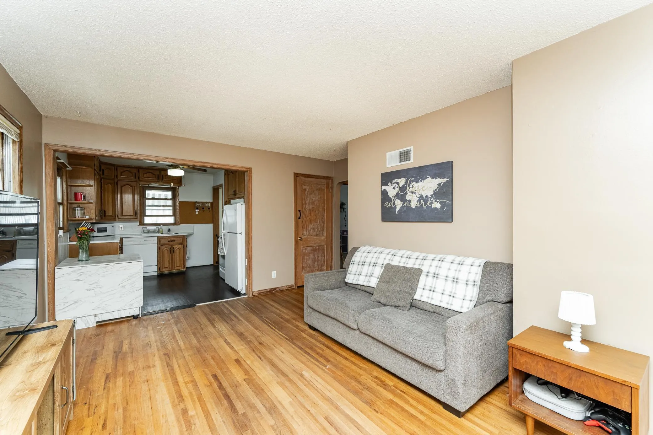 The moment you walk in, you’ll notice gleaming hardwood floors that add warmth and timeless style. The main floor features a functional layout with a cozy living room, a handy breakfast “pass through” to the kitchen, and two spacious bedrooms along with a full bathroom. Head upstairs and discover a wide-open bedroom retreat—complete with plenty of storage space—that feels like its own private hideaway.