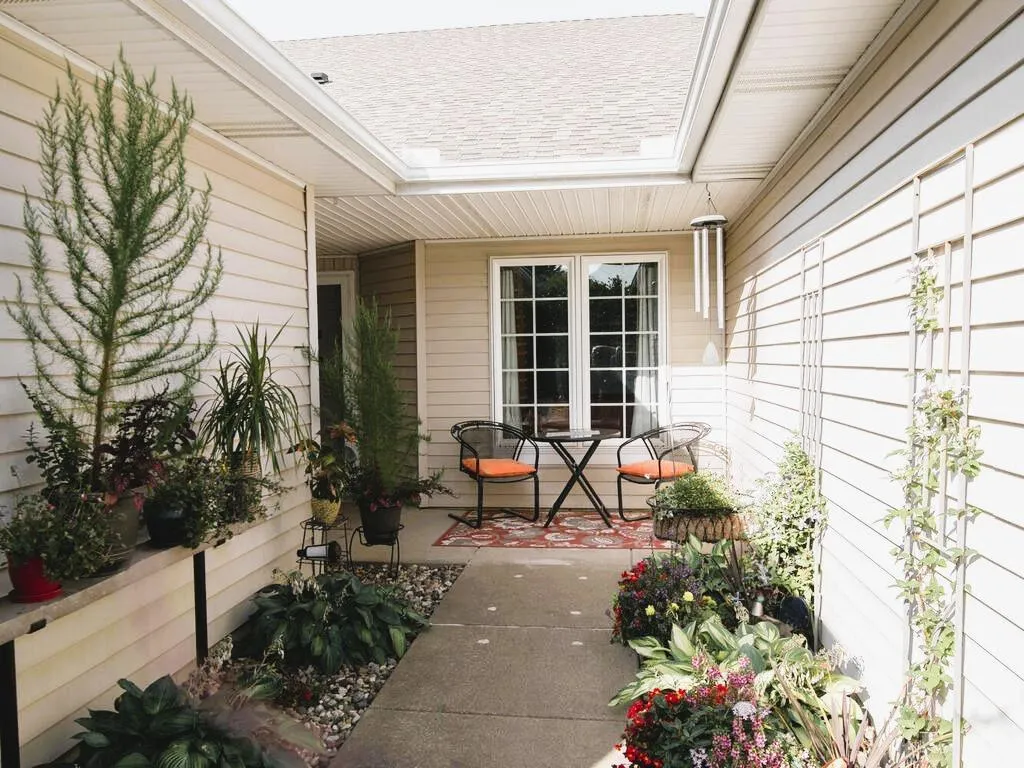 Beautifully updated one level townhome offering stylish comfort and easy living! All the updates have been done, creating a turn key property ready for its new owner(s). Step inside to an open-concept layout highlighted by fresh paint, new lighting, LVT plank floors, floor to ceiling stone surround gas fireplace and a gorgeous, remodeled kitchen featuring two-tone maple cabinets, granite counters, pantry with pull-outs, and a striking black walnut live-edge breakfast bar. The spacious owner’s suite boasts a walk-in closet and a professionally updated private ¾ bath with custom ceramic tile, walk-in solid surface shower and double sink vanity. A bright sunroom with vintage library door, opens to a private patio-perfect for morning coffee or evening relaxation. Additional features include a refreshed main bath, 2nd bedroom and modern finishes throughout. Outdoor living spaces also shine with welcoming front walkway with beautiful perennial gardens as well as the very private patio surrounded by lush plantings – a testament to the seller’s green thumb – creating peaceful outdoor retreat areas. Well maintained association and convenient access to shopping, restaurants, walking trails and roadways for easy commute.