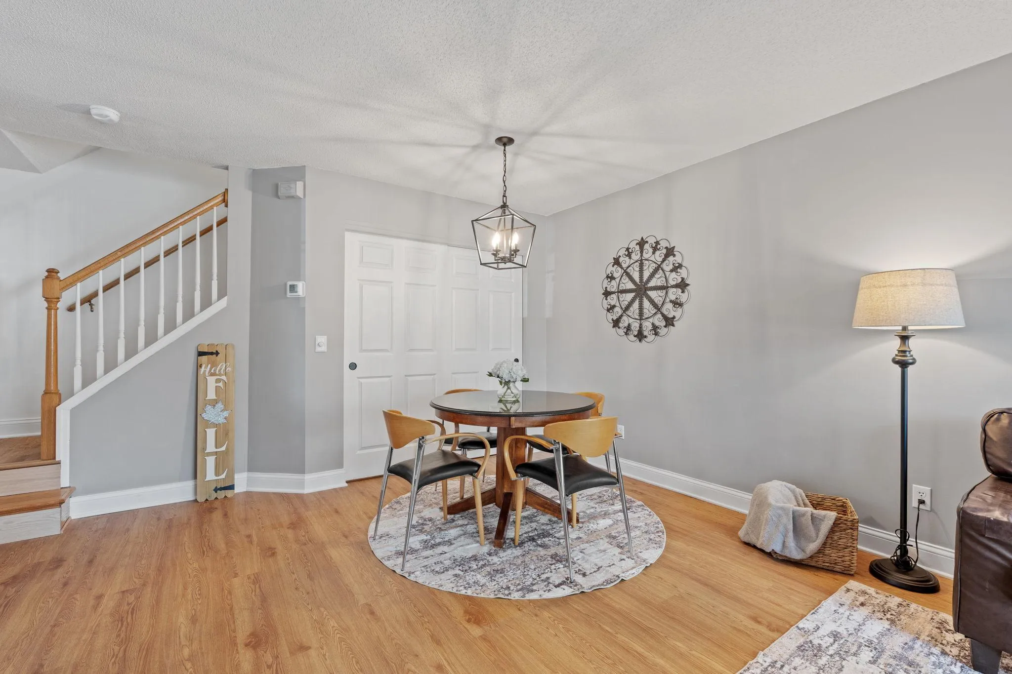 Welcome to this beautifully updated end-unit townhome, thoughtfully refreshed with modern finishes and move-in ready appeal. The main level boasts brand-new flooring, fresh paint and updated lighting that create a bright and inviting atmosphere. The stylish kitchen features updated appliances, perfect for daily living and entertaining, while a cozy electric fireplace adds warmth and charm to the living area.