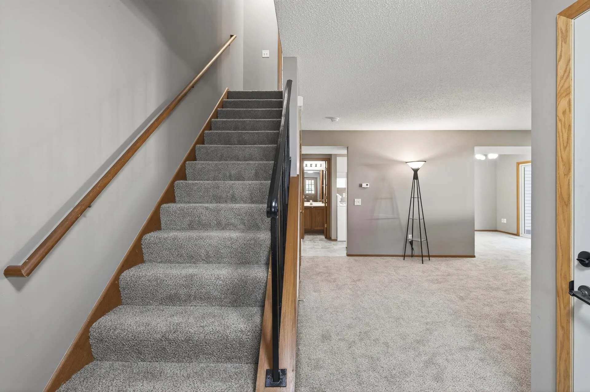 3 bedroom or 2 bed plus den, two bath, two car garage townhome. The property has been restored top to bottom by a third party contractor. Rehab includes an all new kitchen on the main level including new countertops, cabinets and all new appliances. The main floor utility room has a new furnace and water softener. The entire home has new carpeting and is freshly painted throughout. There is a large yard and patio. Home is conveniently located to shopping, parks and schools.
