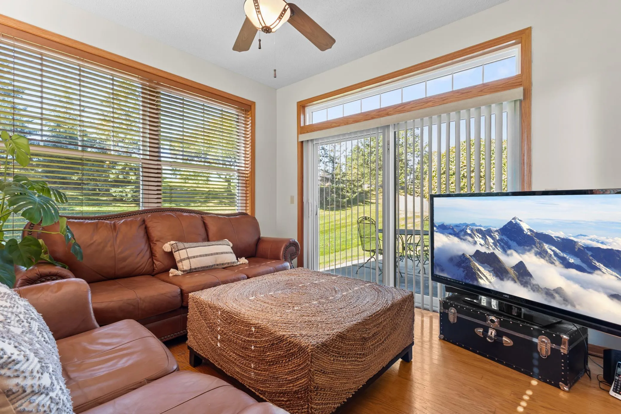 Enjoy effortless one-level living in this spacious 2-bedroom, 3-bath end unit, perfectly situated in the sought-after 55+ community of Cornerstone Commons! Designed for comfort and convenience, this home offers all essential amenities on the main level and a bright, open layout ideal for everyday living or entertaining. The main level features a bright living room with a cozy gas fireplace, a spacious dining area, and a well-appointed kitchen with newer granite countertops, center island, new stainless dishwasher (10/2025), and pantry. Enjoy the delightful 4-season sunroom that opens to a private patio with an electric motorized retractable awning -perfect for relaxing or entertaining. Two bedrooms are located on the main level, including a generous primary suite with a large soaking tub, double sinks, and separate shower. A 1/2 guest bath and convenient main-floor laundry add to the home’s thoughtful design. The finished lower level offers a large family room, an additional 3/4 bath, and abundant storage space. There’s also potential for a third bedroom, with an egress window already in place. Tucked within a friendly and well-kept community, this home offers both comfort and peace of mind – ideal for those looking to simplify without sacrificing space or style. New in last 3-5 years: backup generator, furnace/AC, kitchen granite, SS refrigerator, LVT in kitchen and bathrooms, washer & dryer, all windows and sliding door on main level. Dishwasher new in 10/2025.