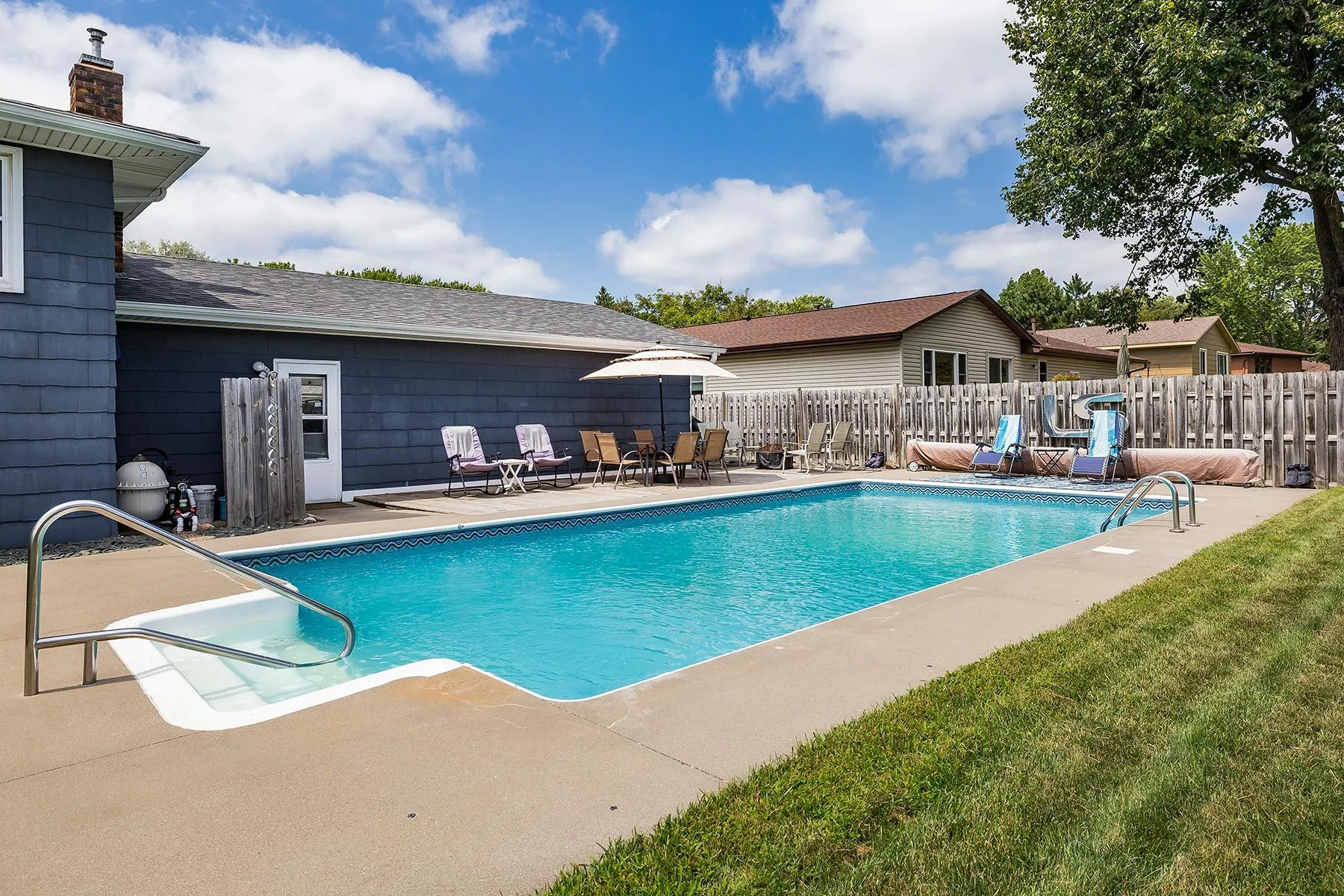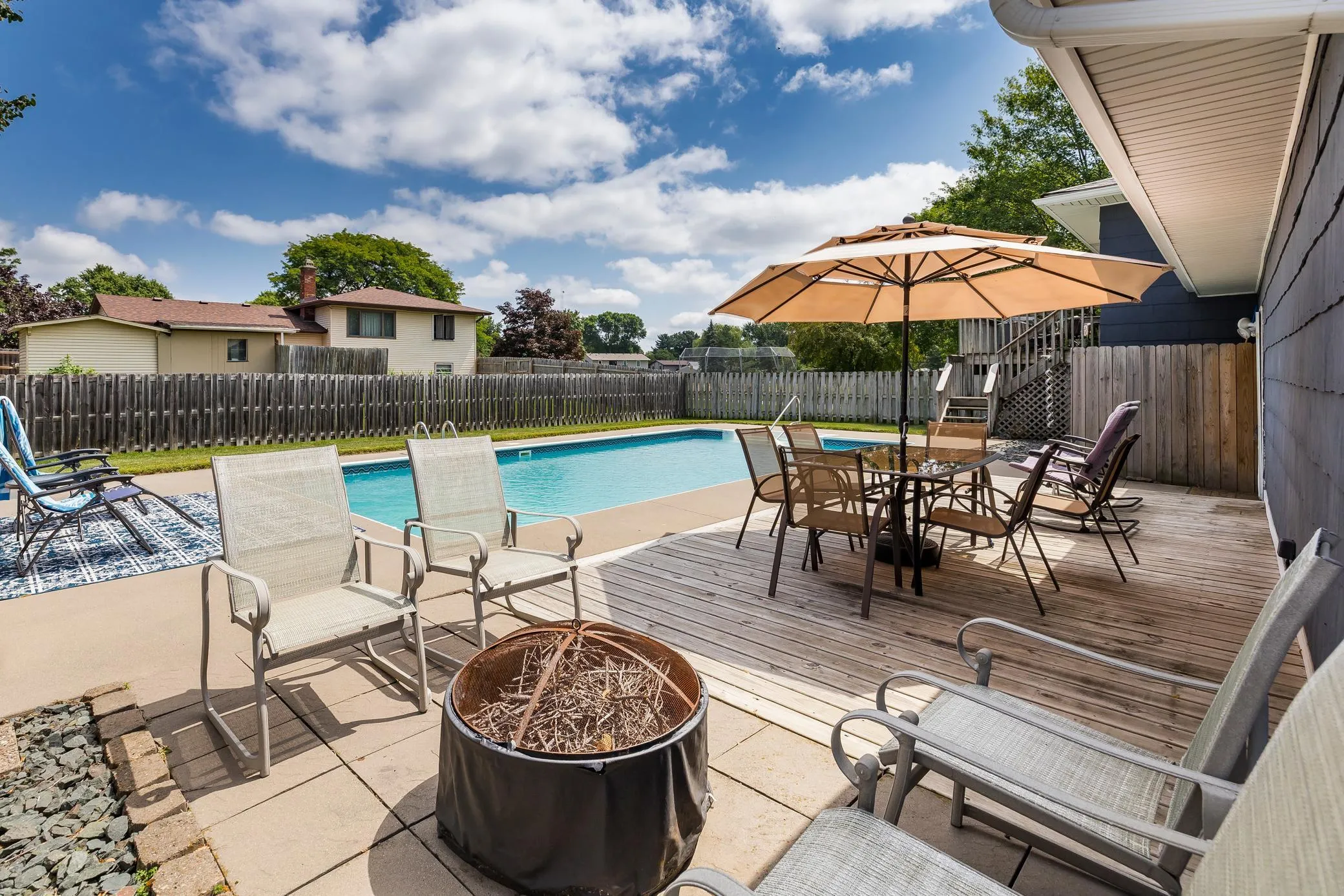 This stunning 5-bedroom, 3-bathroom split-level home seamlessly blends modern updates with functional living. Highlights include a stylishly renovated kitchen, updated appliances, updated bathrooms, new flooring, a newer roof, furnace, AC, and siding. The versatile layout offers ample space for living areas, a home office, or whatever suits your needs. Located in a lively neighborhood, directly across from a park with a new jungle gym and little league field, this home features a spacious design and a private backyard oasis with an in-ground pool.